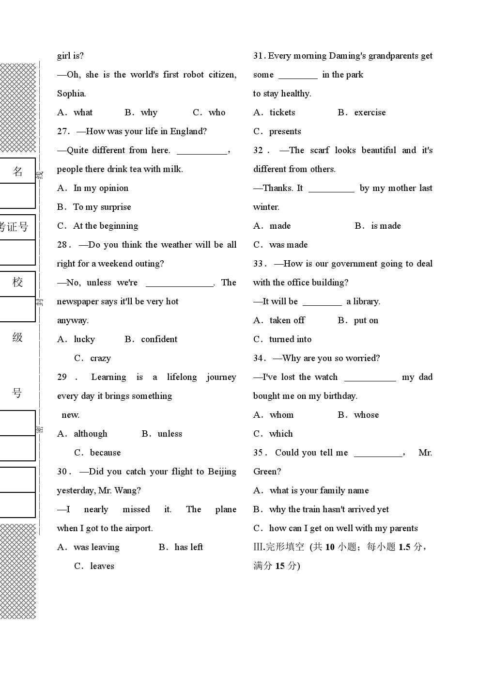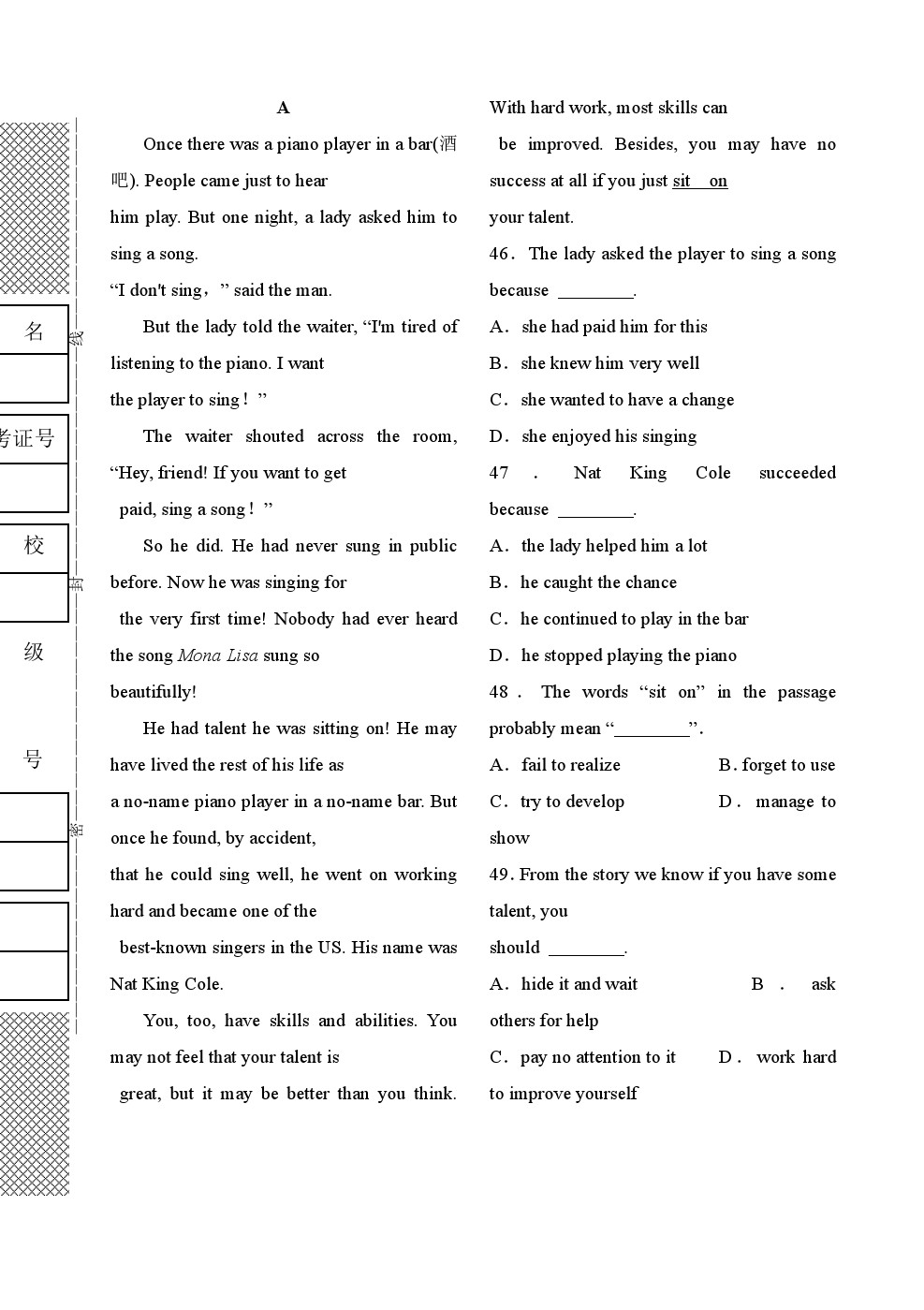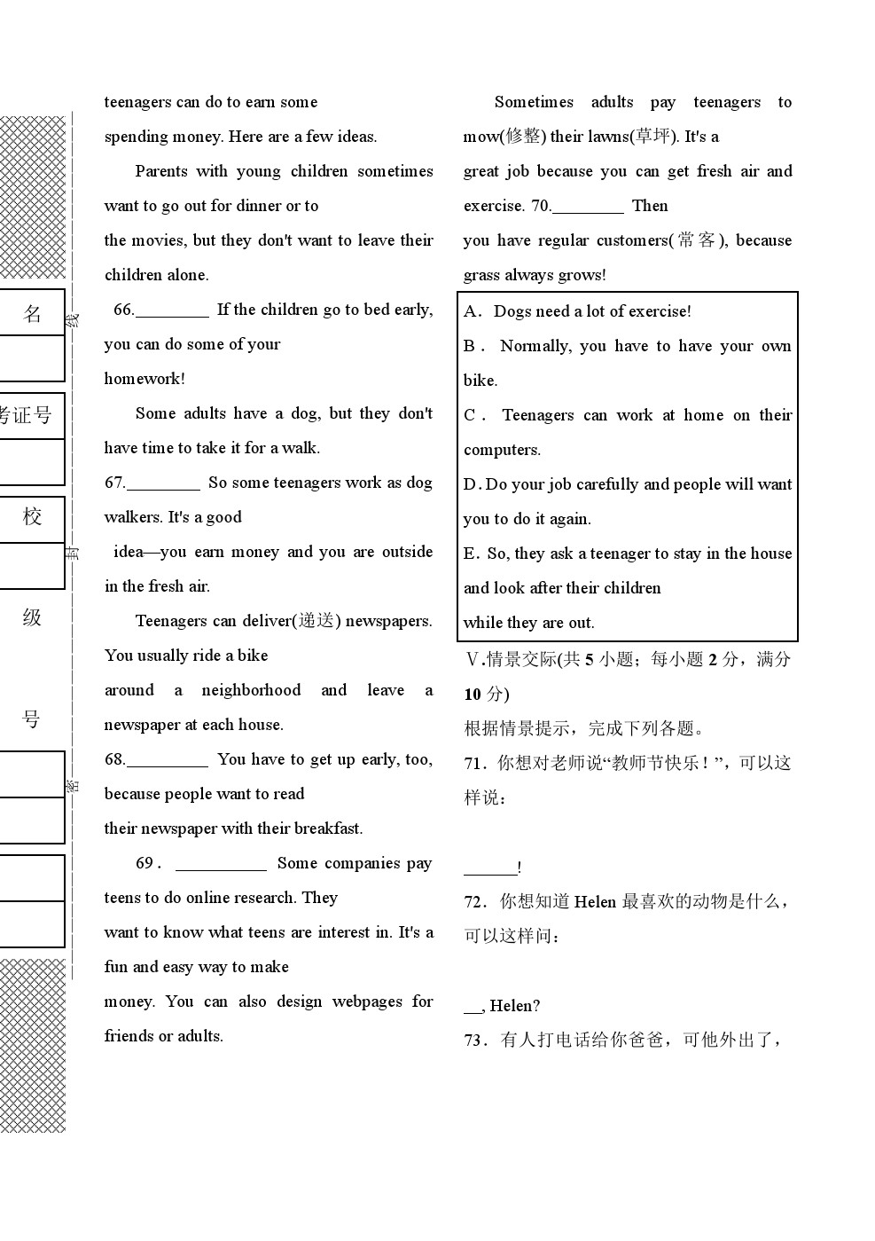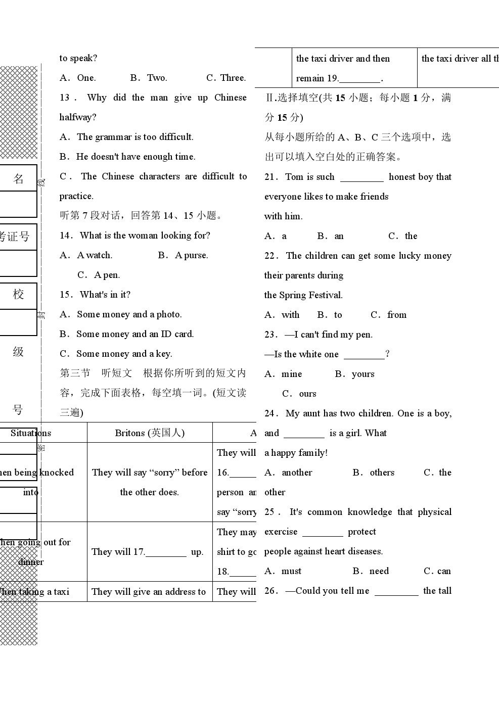 【摘要】2019年福建省初中畢業(yè)和高中階段學(xué)校招生考試 九年級(jí)英語(yǔ)階段檢測(cè)試題及答案,供大家參閱,更多中考信息可關(guān)注閩州教育中考資訊專欄。