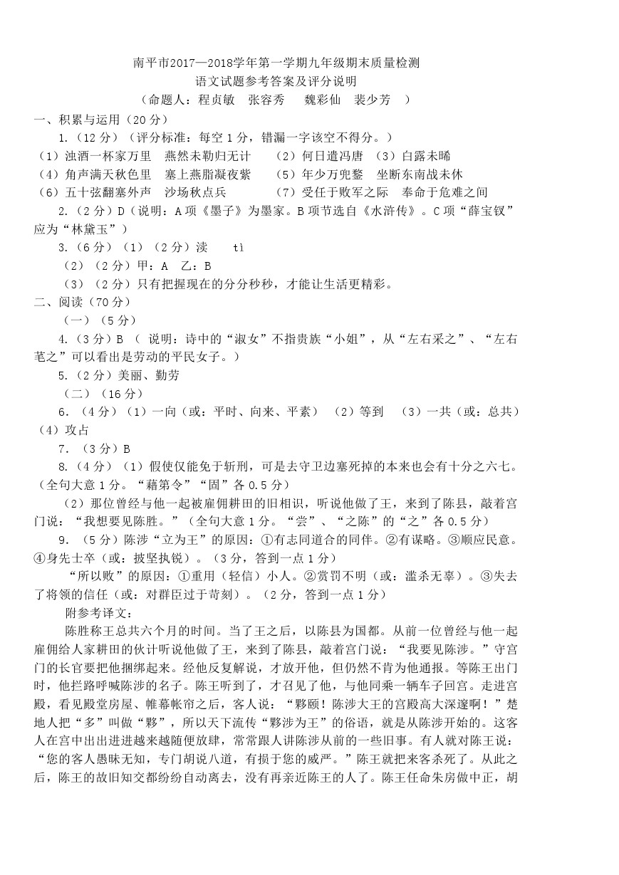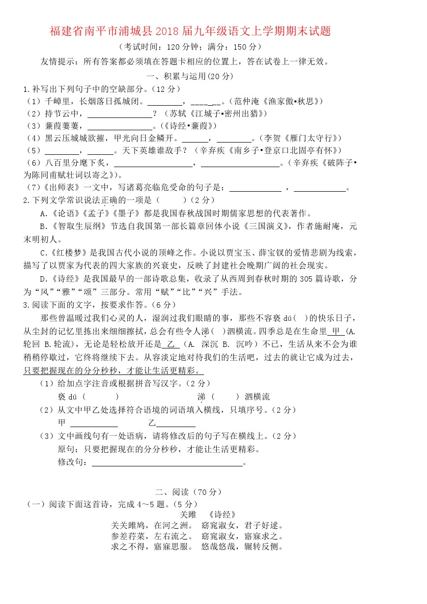 【摘要】福建省南平市浦城縣2018屆九年級語文上學(xué)期期末試題及答案,更多中考信息可關(guān)注閩州教育中考資訊專欄。