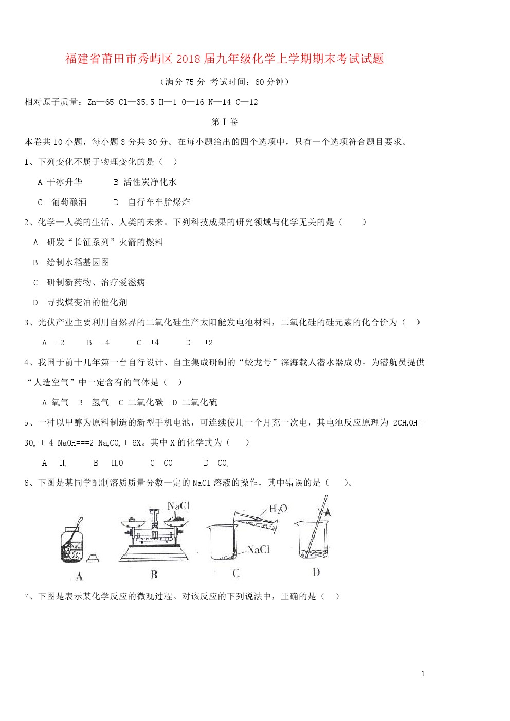 【摘要】福建省莆田市秀嶼區(qū)2018屆九年級(jí)化學(xué)上學(xué)期期末考試試題及答案,供大家參閱,更多中考信息可關(guān)注閩州教育中考資訊專(zhuān)欄。