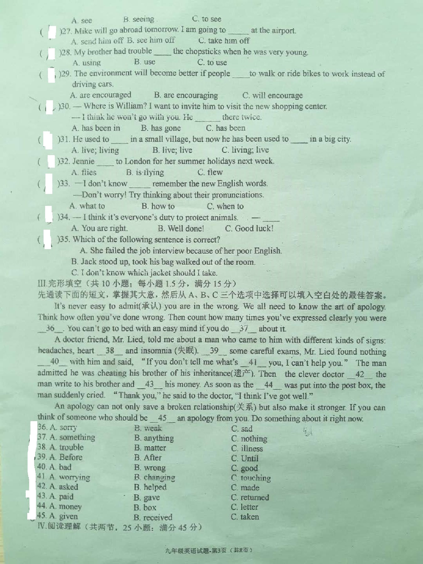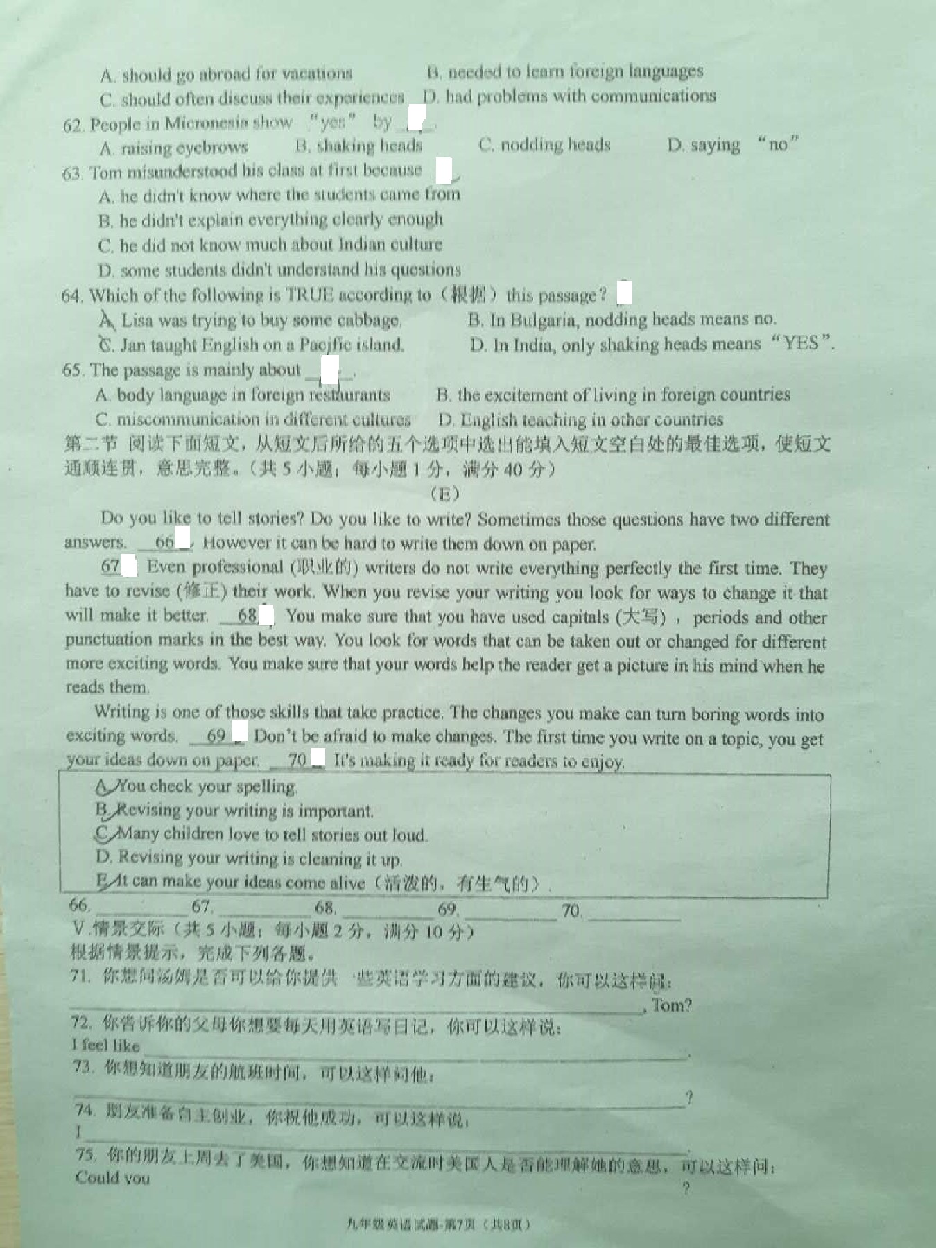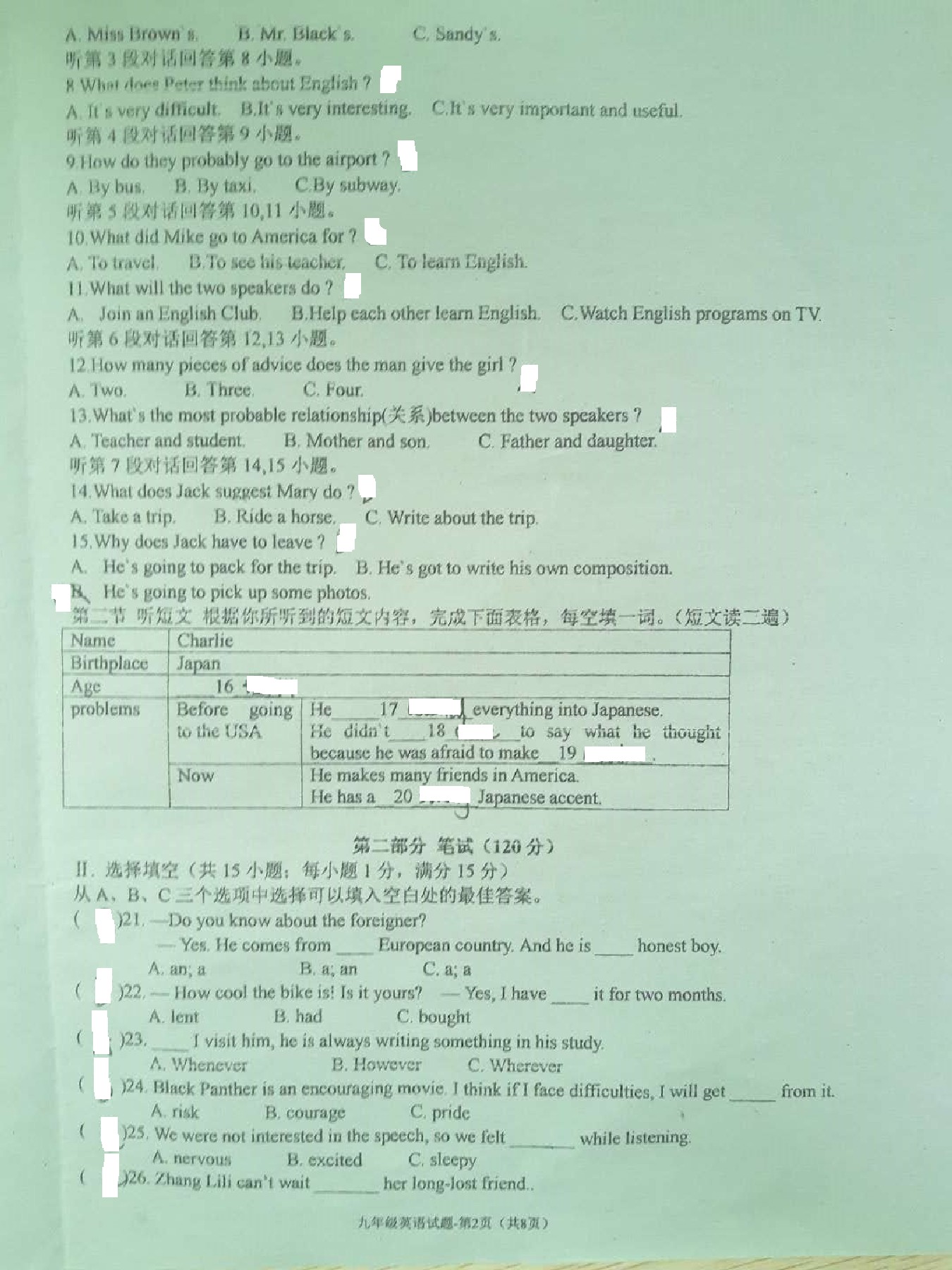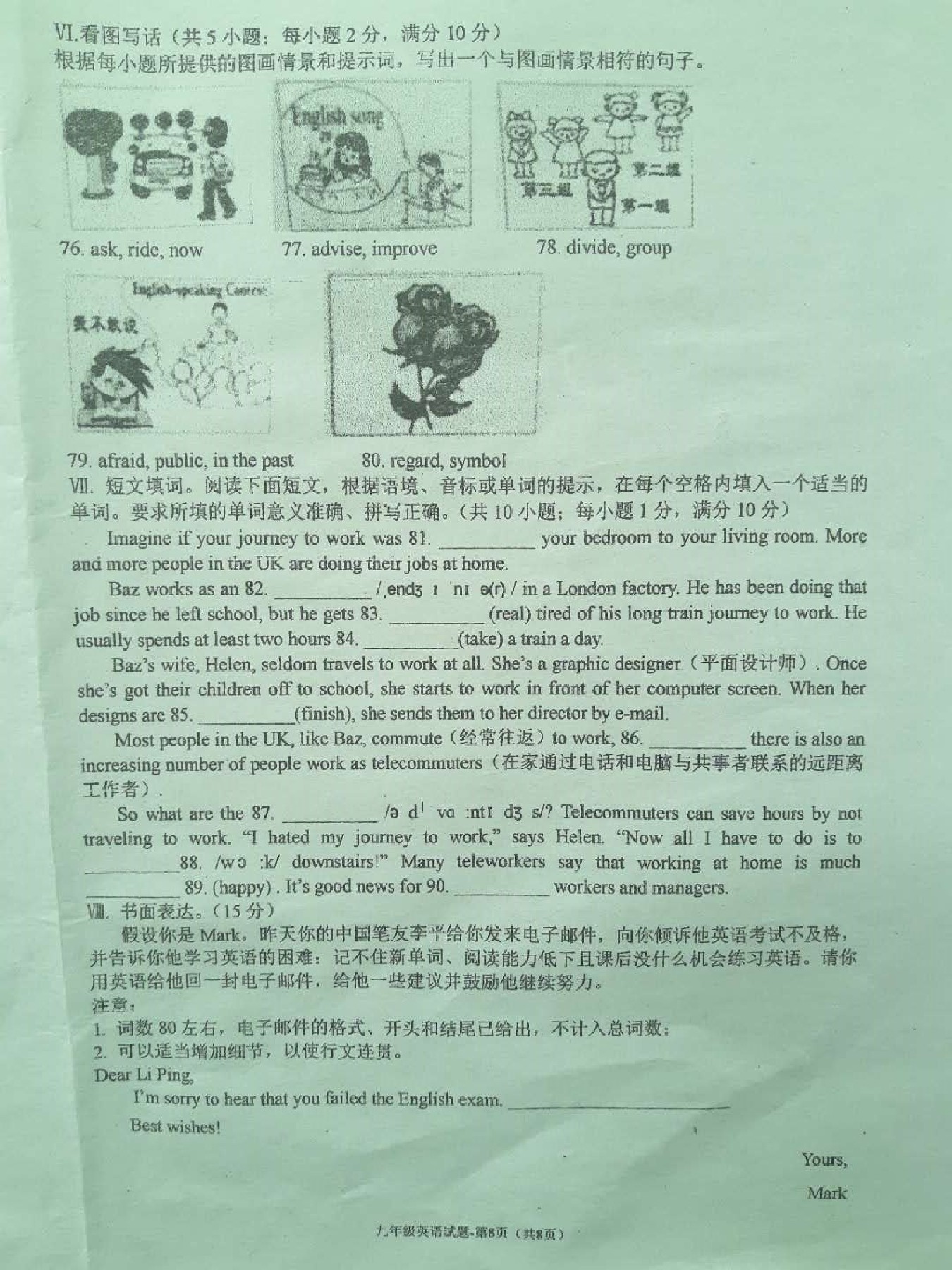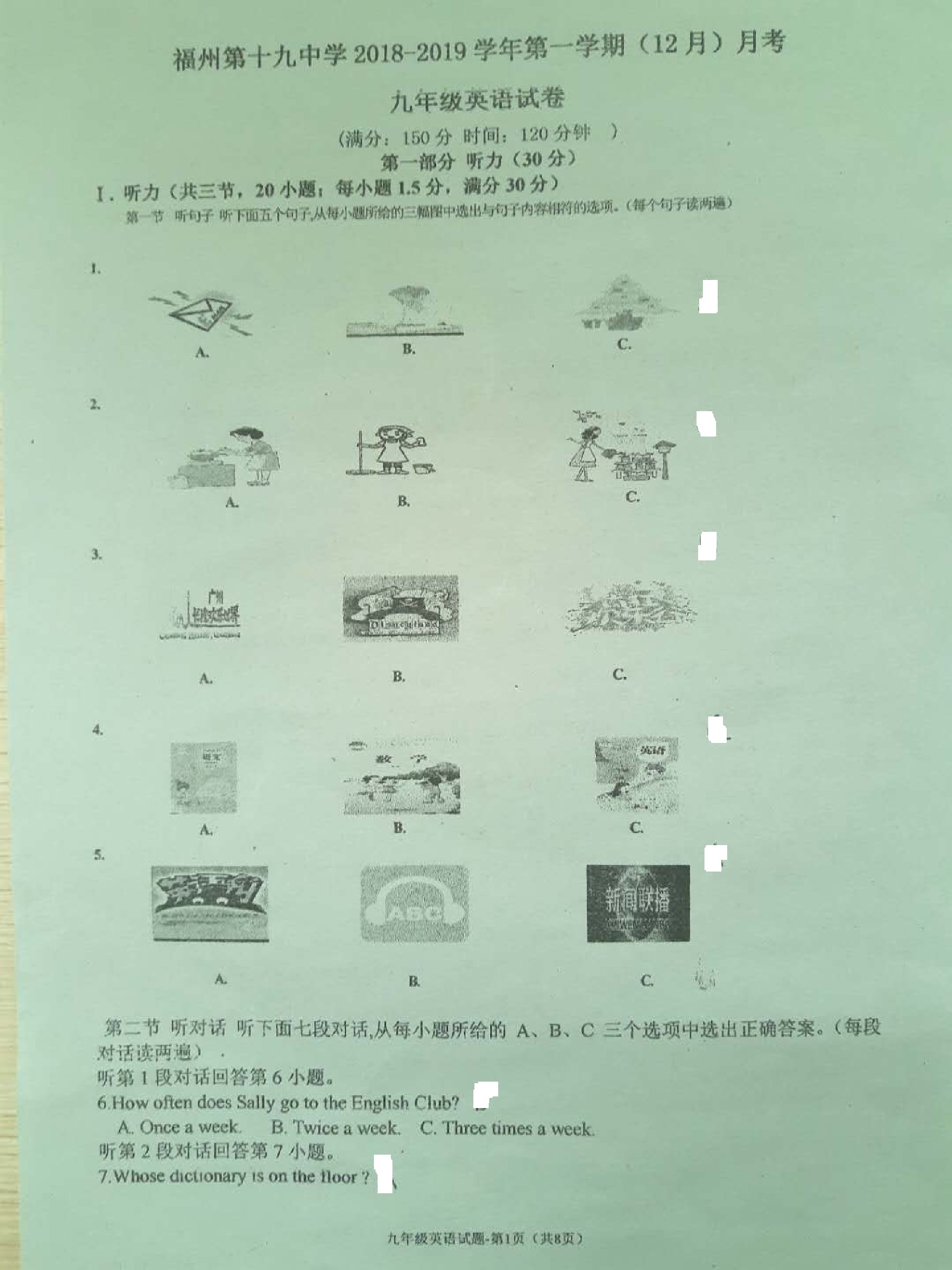 【摘要】福建省福州市第十九中2018-2019上學(xué)期12月月考九年級英語試題,更多中考信息可關(guān)注閩州教育中考資訊專欄。