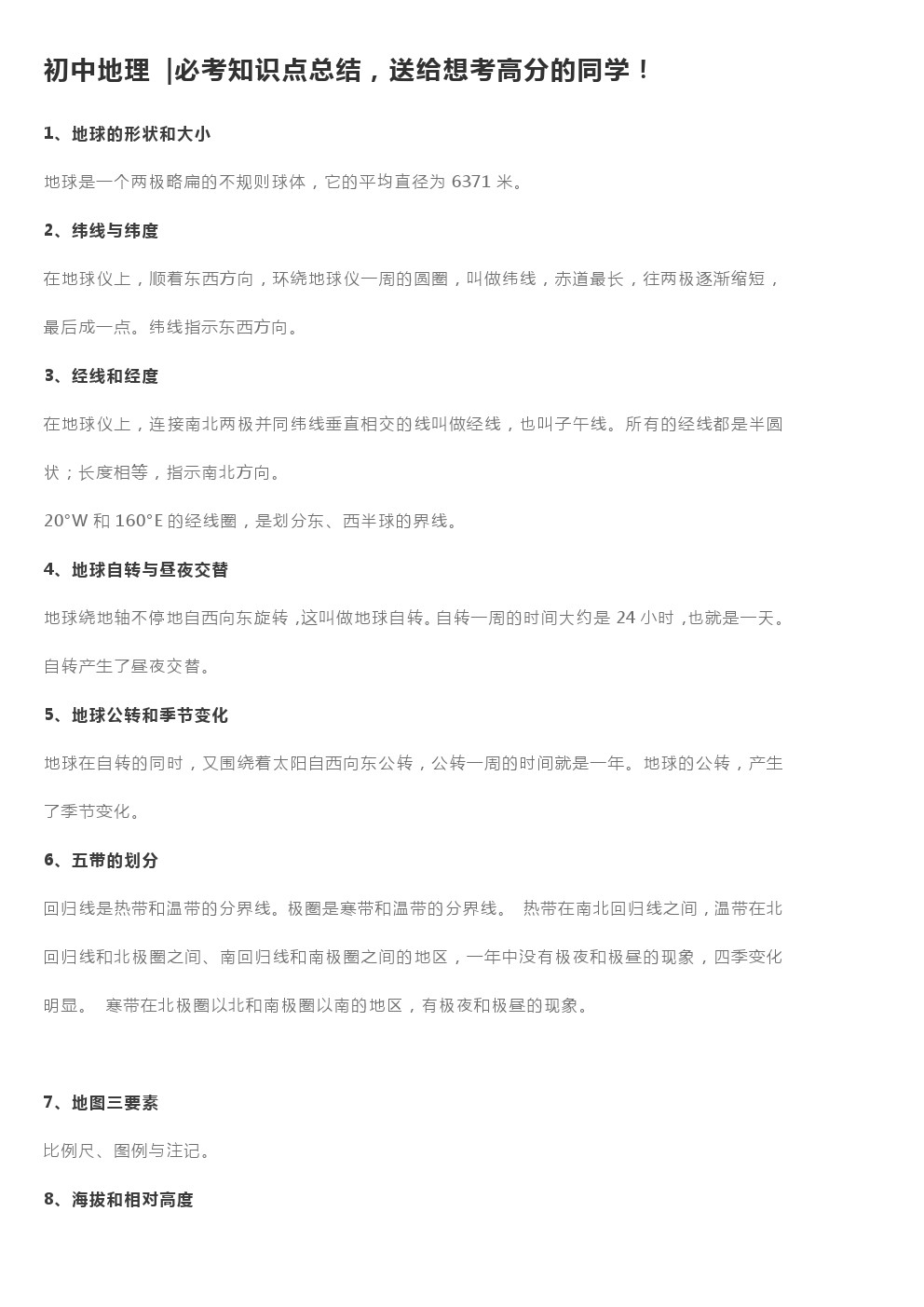 【摘要】今天小編為大家?guī)?/span>初中地理必考知識(shí)點(diǎn)總結(jié),大家一定要好好收藏哦!更多中考信息可關(guān)注閩州教育中考資訊專欄。