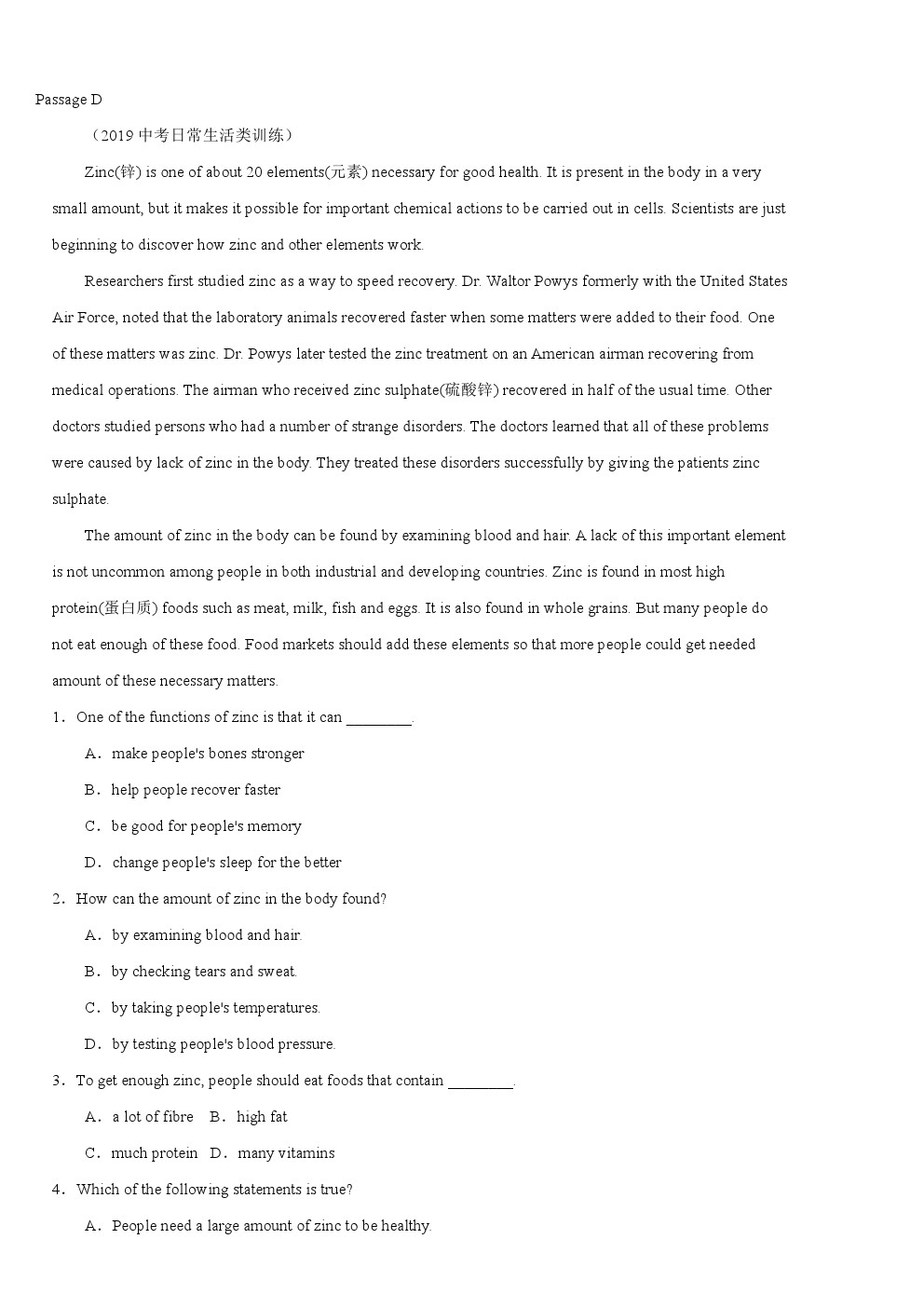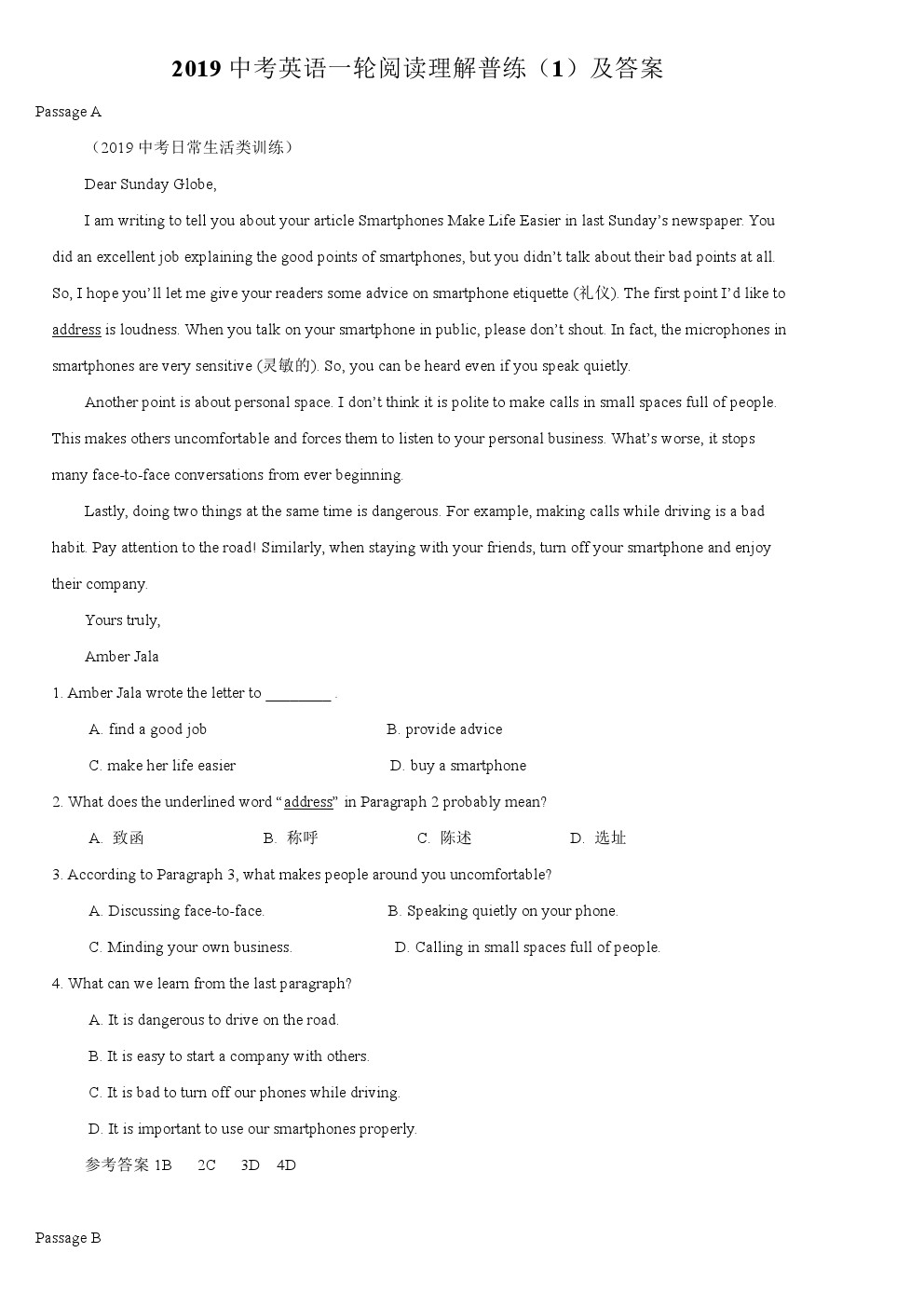 【摘要】英語在分數中占很大的比例,小編為大家整理了2019中考英語一輪閱讀理解普練及答案!更多中考信息可關注閩州教育中考資訊專欄。