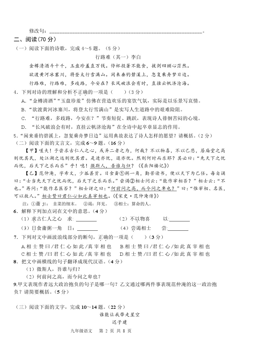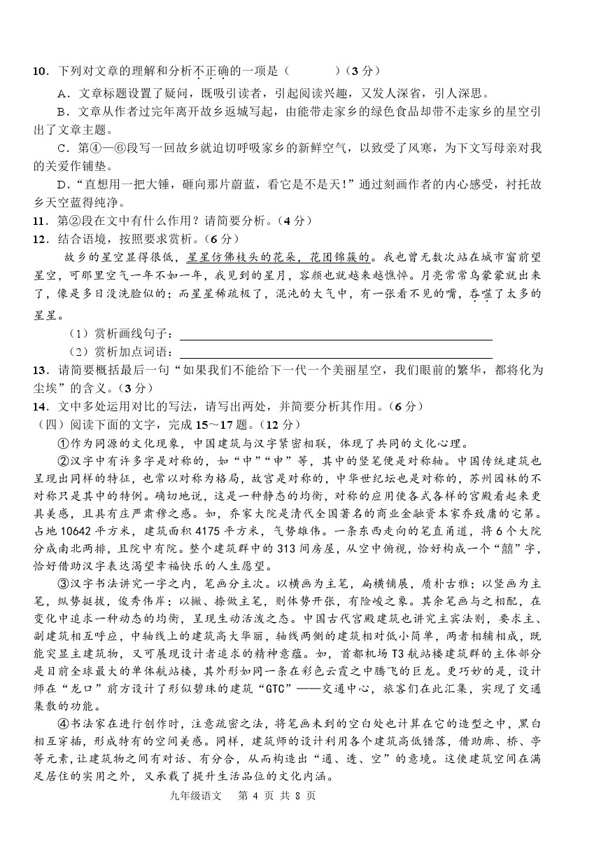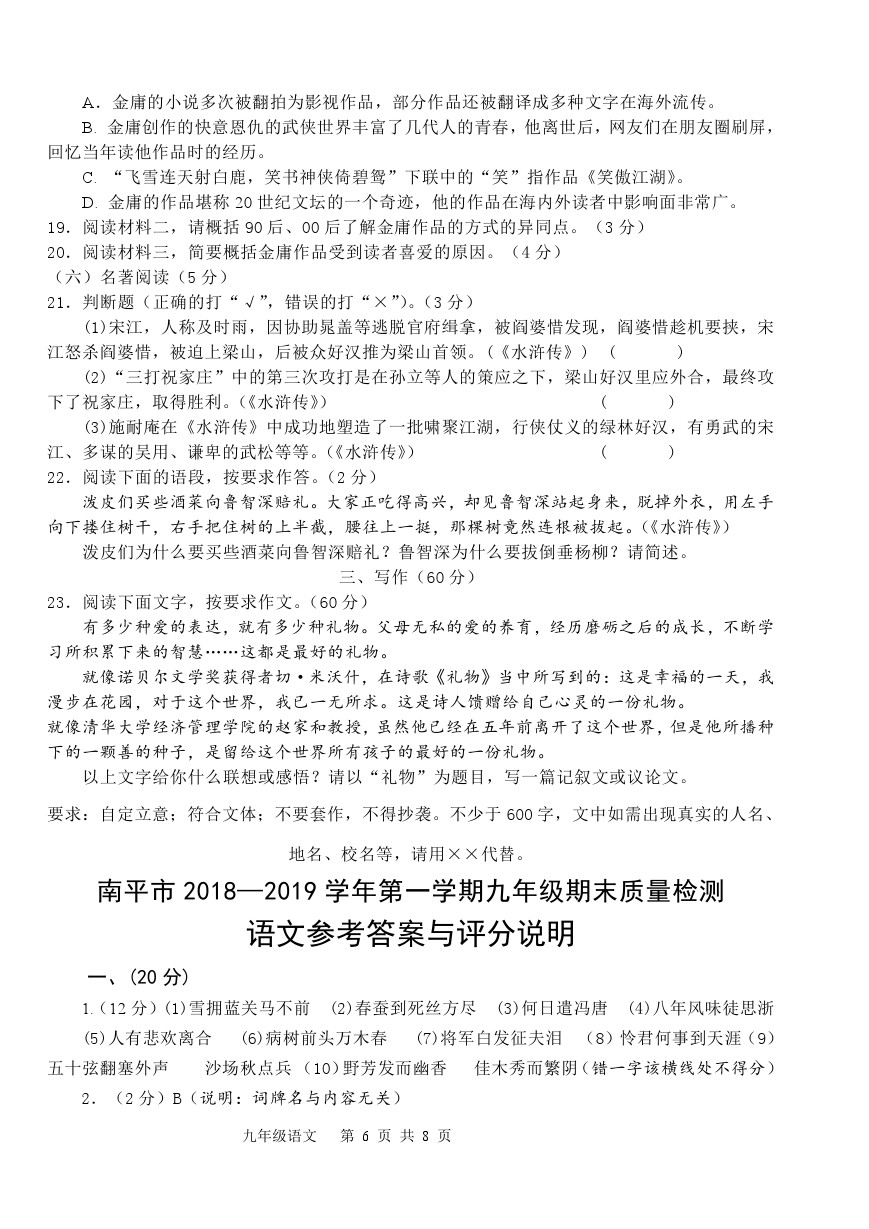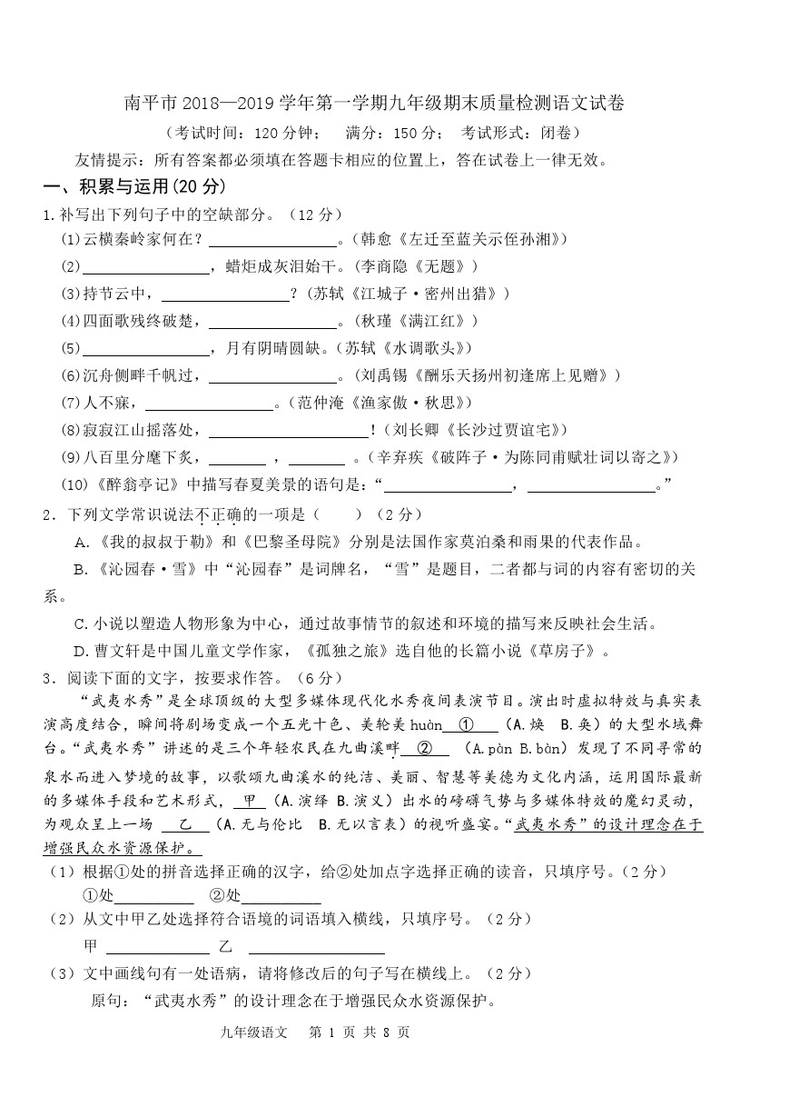 【摘要】福建省南平市2018—2019學(xué)年(上)九年級期末質(zhì)量檢測語文試卷!更多中考信息可關(guān)注閩州教育中考資訊專欄。