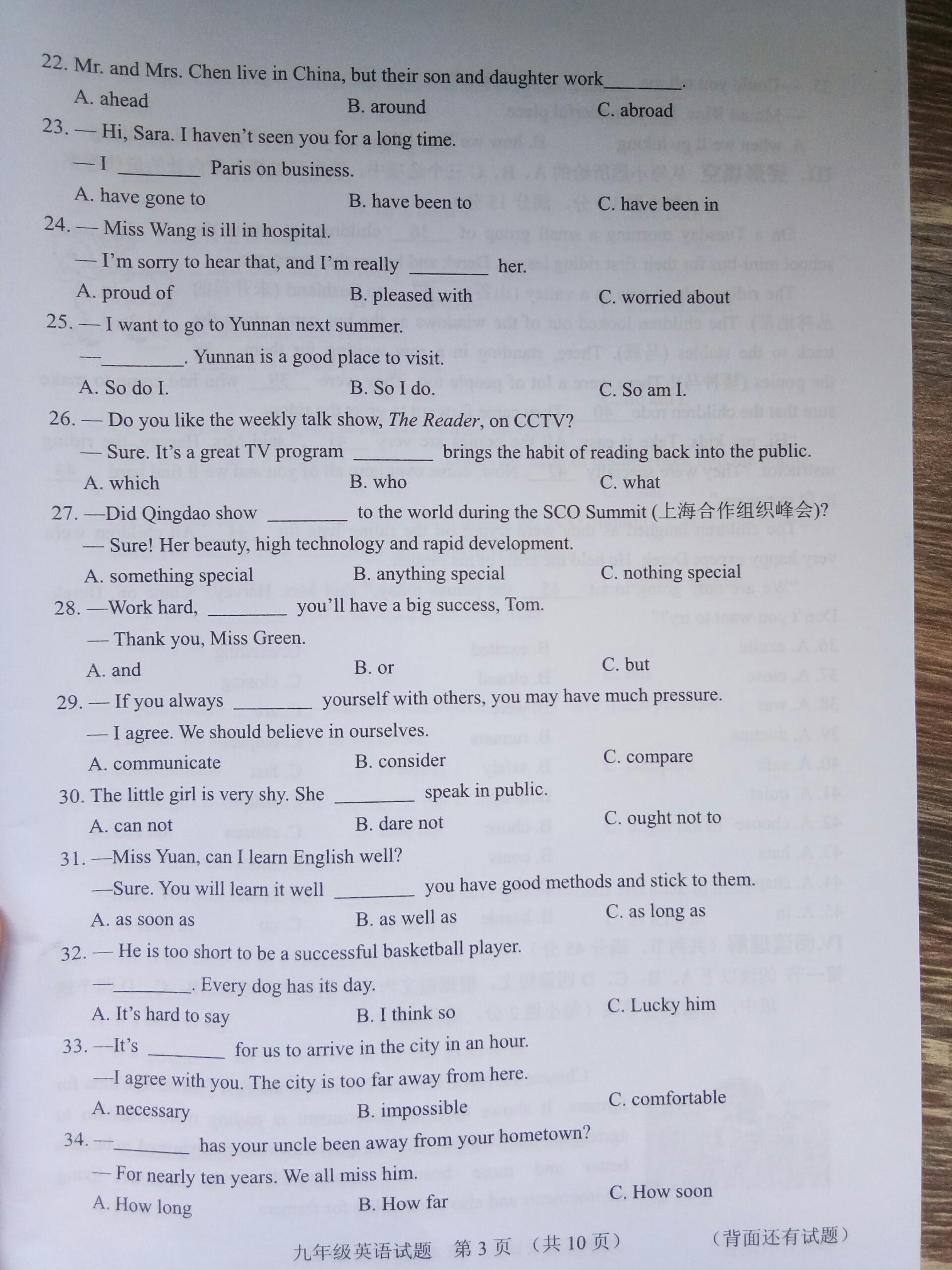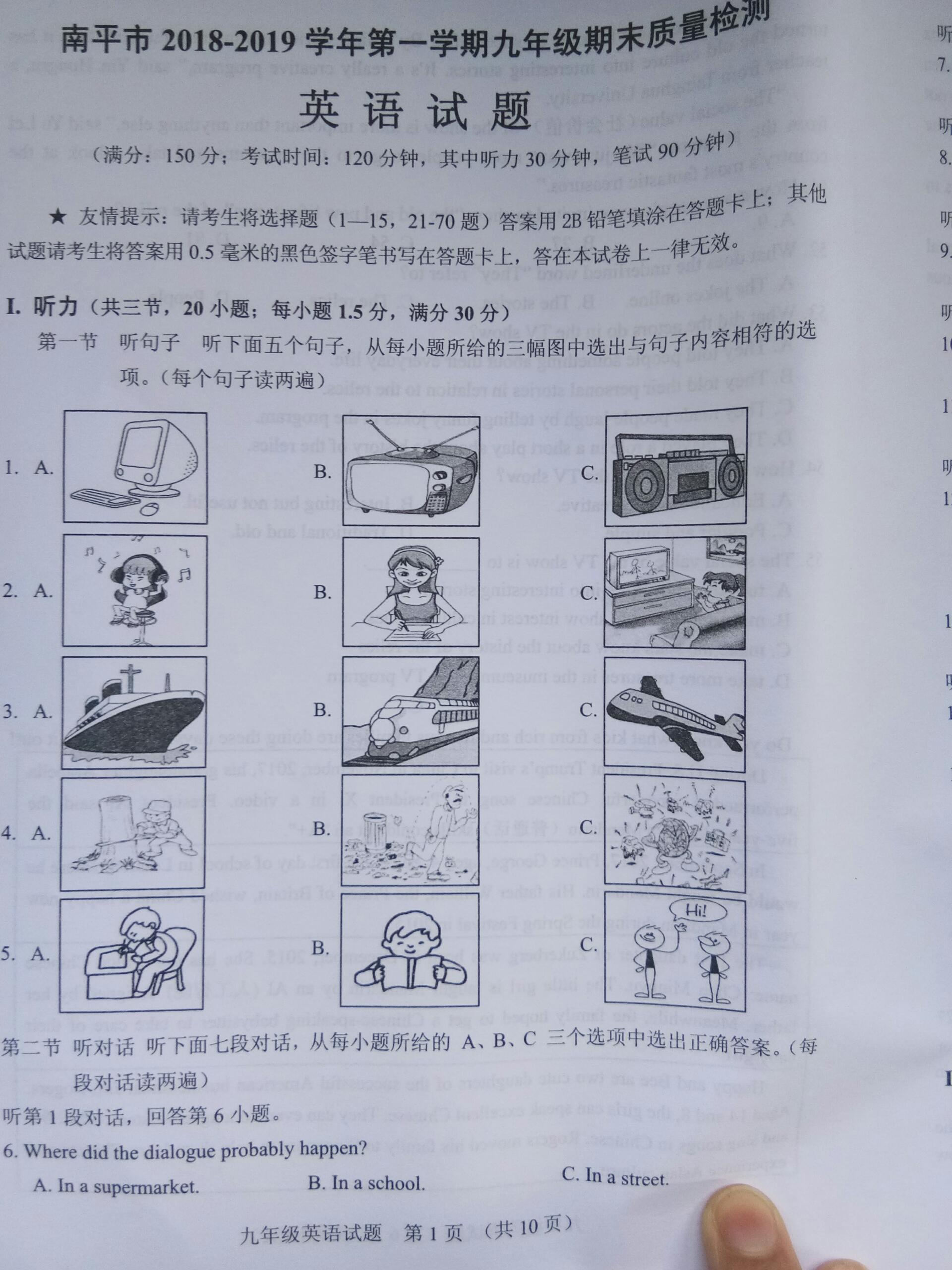 【摘要】福建省南平地區(qū)建甌統(tǒng)考2018-2019上學(xué)期九年級(jí)英語(yǔ)期末考試試題!更多中考信息可關(guān)注閩州教育中考資訊專欄。