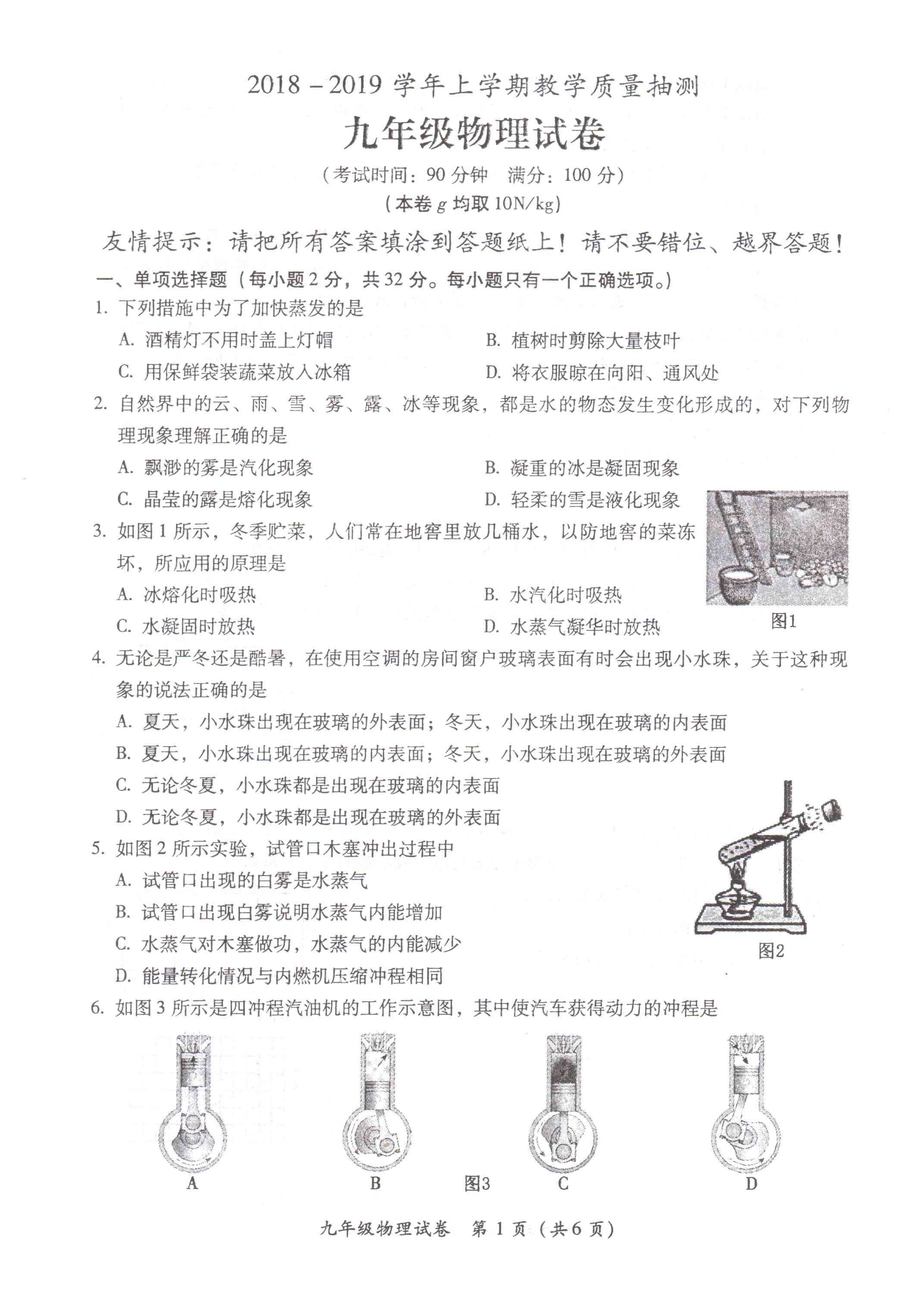 【摘要】福建省漳州市2018-2019學(xué)年上學(xué)期教學(xué)質(zhì)量抽測九年級物理試題!更多中考信息可關(guān)注閩州教育中考資訊專欄。