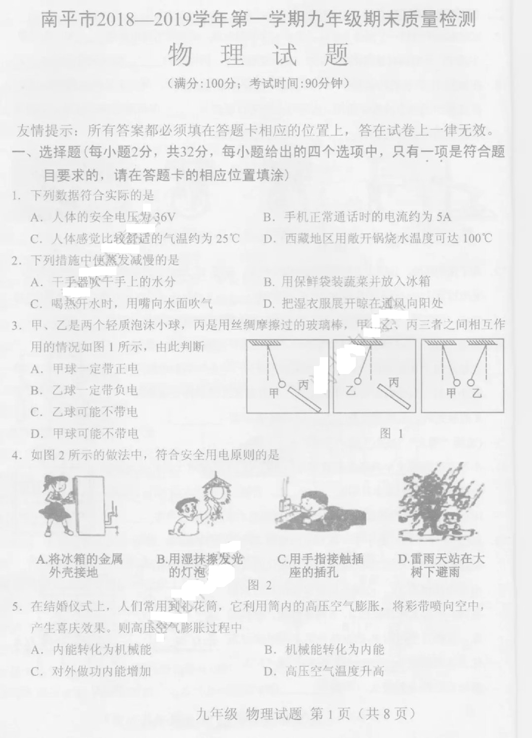 【摘要】福建省南平市2018-2019上學(xué)期九年級質(zhì)量檢測物理試題及答案,更多中考信息可關(guān)注閩州教育中考資訊專欄。