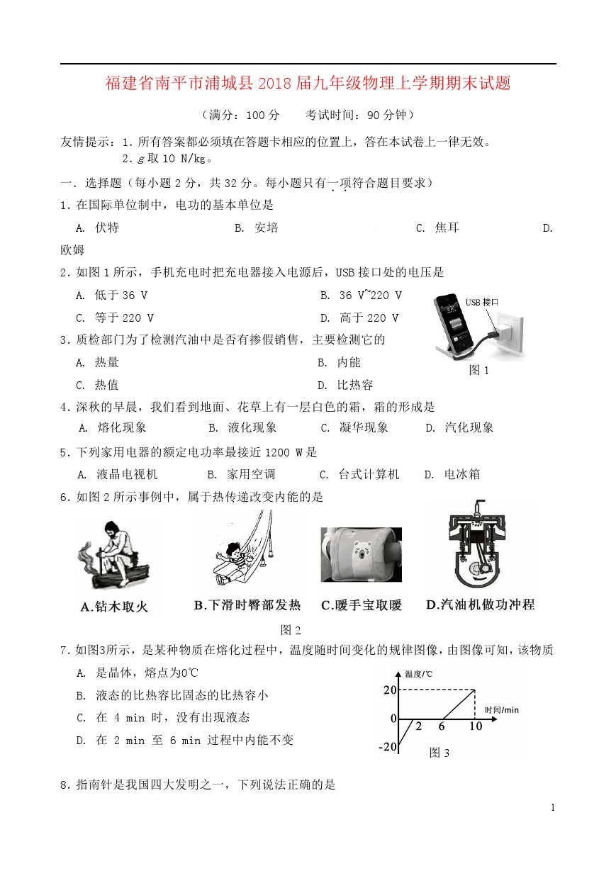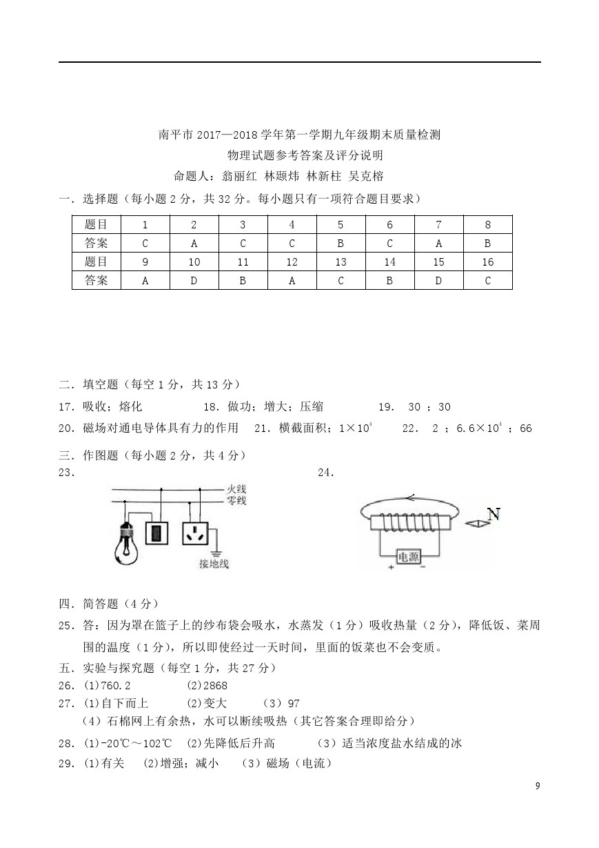 【摘要】福建省南平市浦城縣2019屆九年級物理上學(xué)期期末試題及答案,更多中考信息可關(guān)注閩州教育中考資訊專欄。
