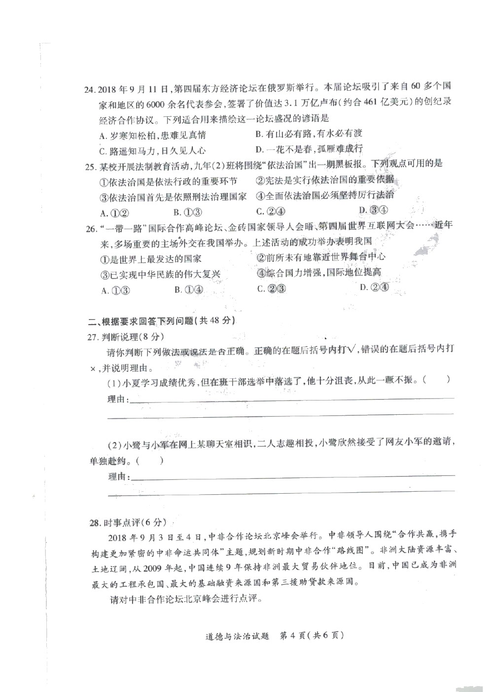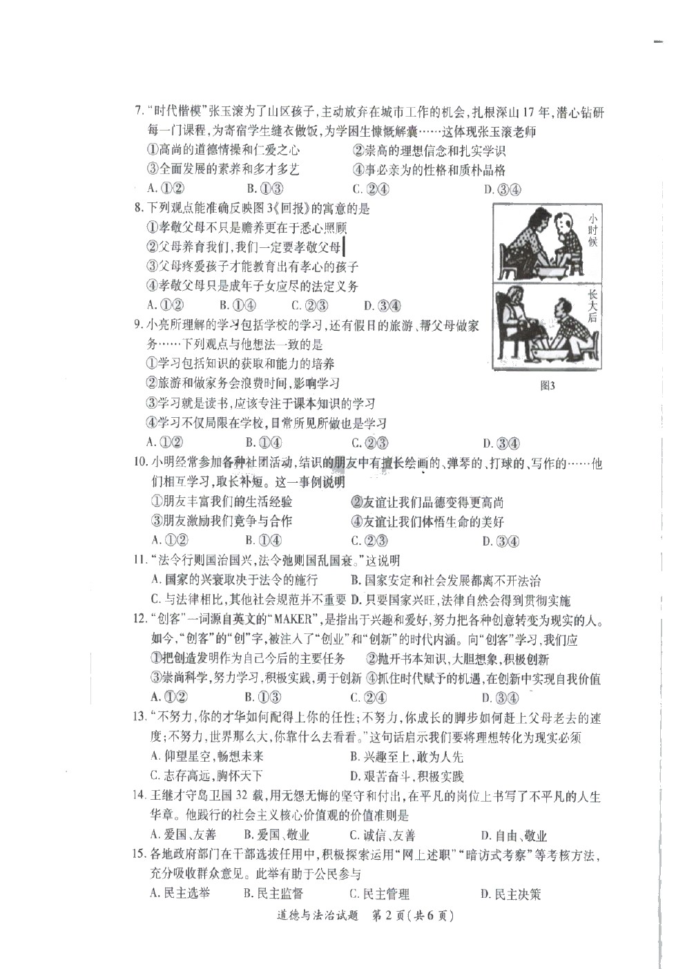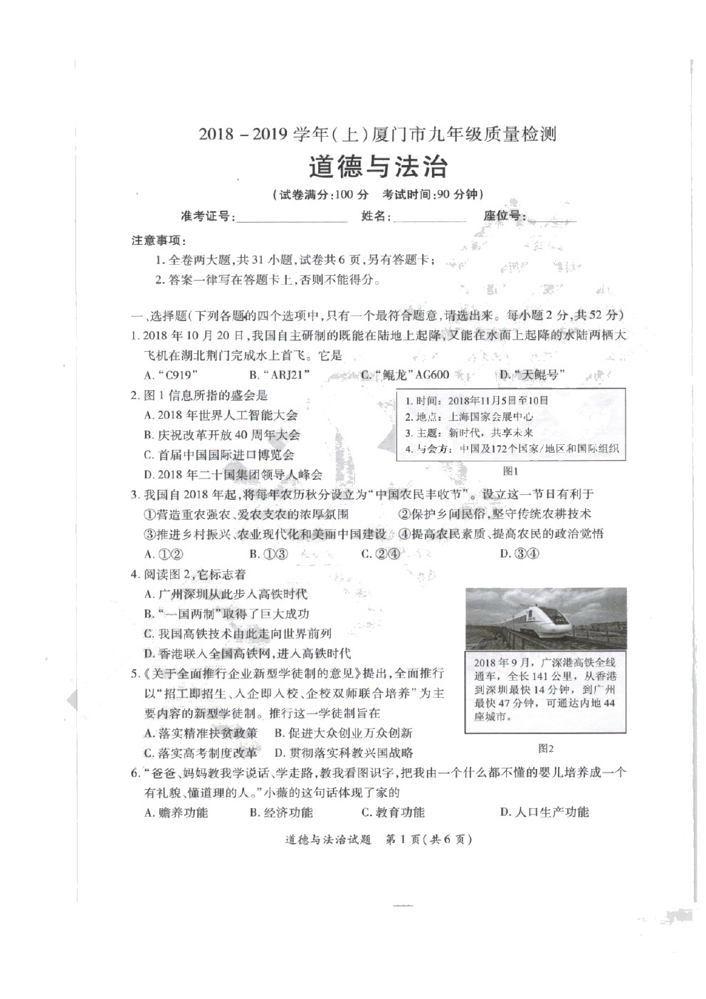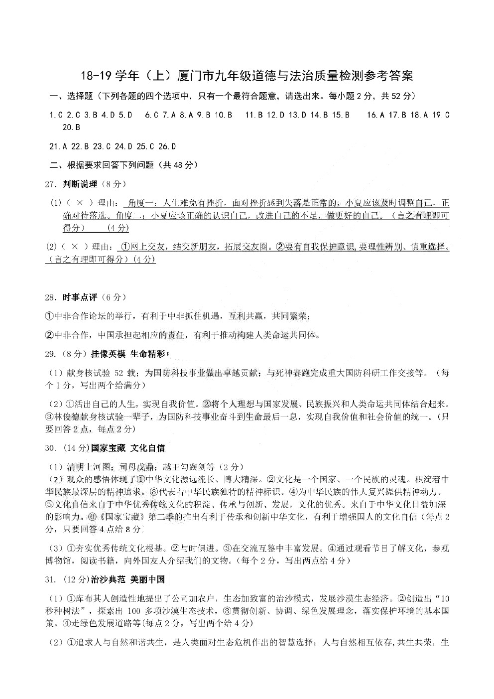 【摘要】福建省廈門市2019屆九年級(jí)上學(xué)期期末質(zhì)量檢測(cè)道德與法治試題!更多中考信息可關(guān)注閩州教育中考資訊專欄