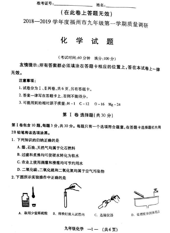 【摘要】福建省福州市2018-2019學年初三上學期期末一檢化學試題及答案。更多中考信息可關注閩州教育中考資訊專欄