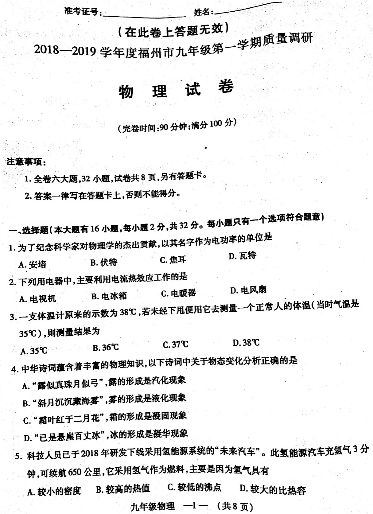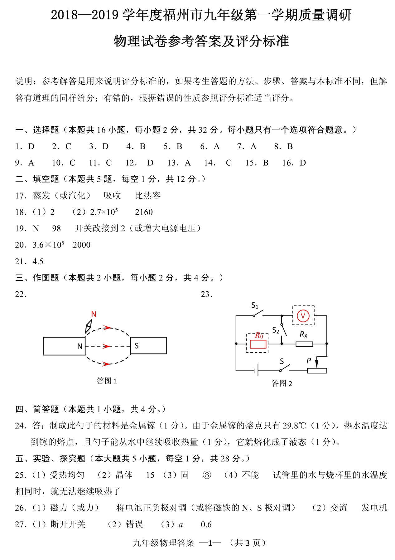 【摘要】福建省福州市2018-2019學(xué)年初三上學(xué)期期末一檢物理試卷及答案,同學(xué)們可以針對題目更好的復(fù)習(xí)!更多中考信息可關(guān)注閩州教育中考資訊專欄。