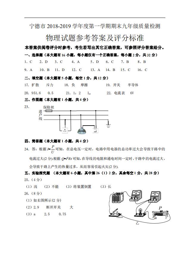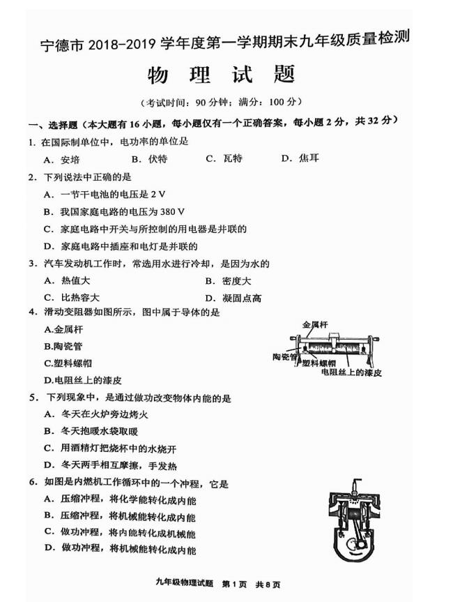 【摘要】福建省寧德市2018-2019學(xué)年度九年級上物理期末質(zhì)量檢測試題及答案!更多中考信息可關(guān)注閩州教育中考資訊專欄。