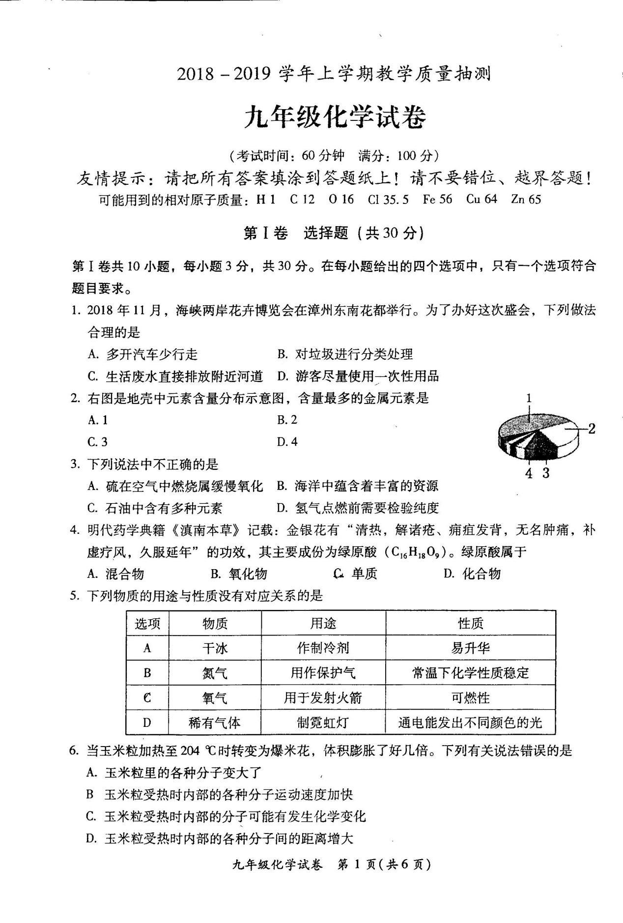 【摘要】福建省漳浦縣2019屆九年級上學(xué)期期末考試化學(xué)試題。更多中考信息可關(guān)注閩州教育中考資訊專欄