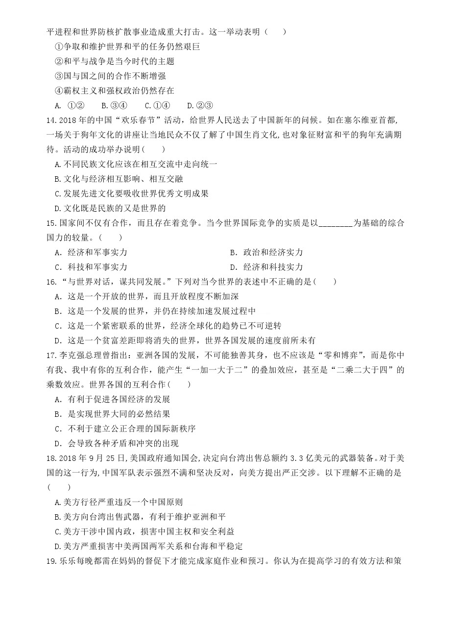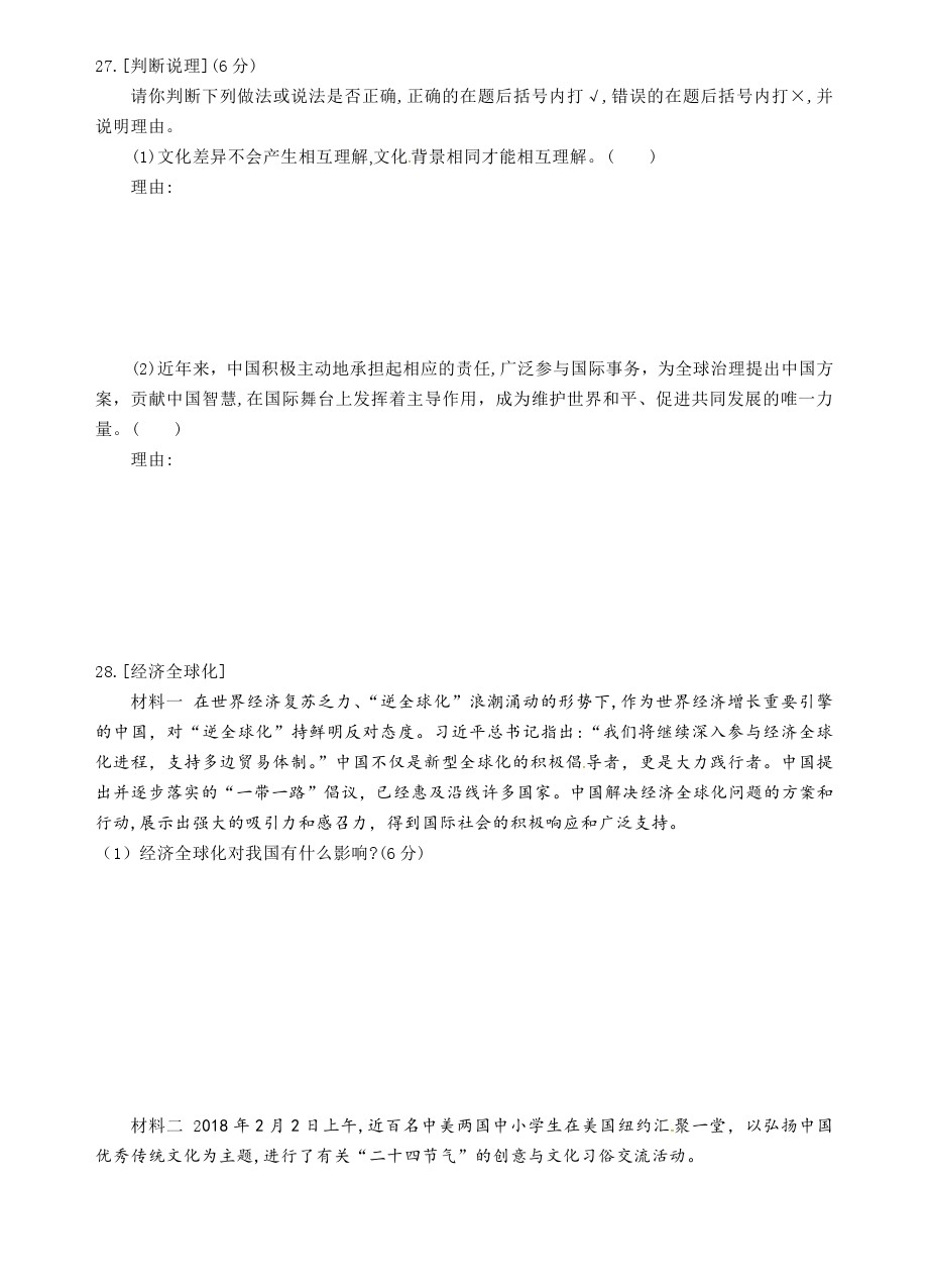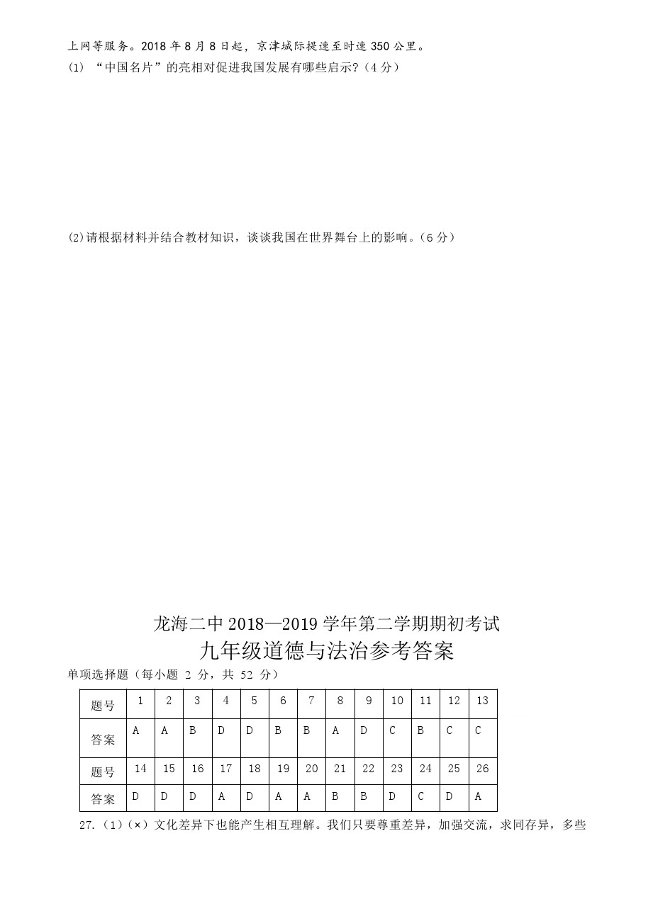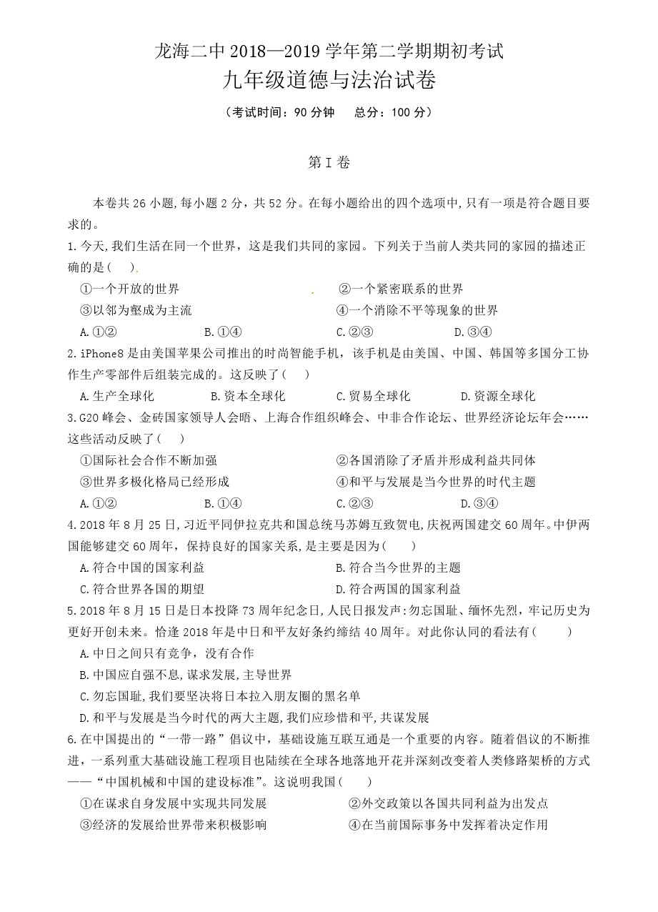 【摘要】福建省龍海市第二中學(xué)2019屆九年級(jí)下學(xué)期期初考試政治試題及答案!更多中考信息可關(guān)注閩州教育中考資訊專欄。