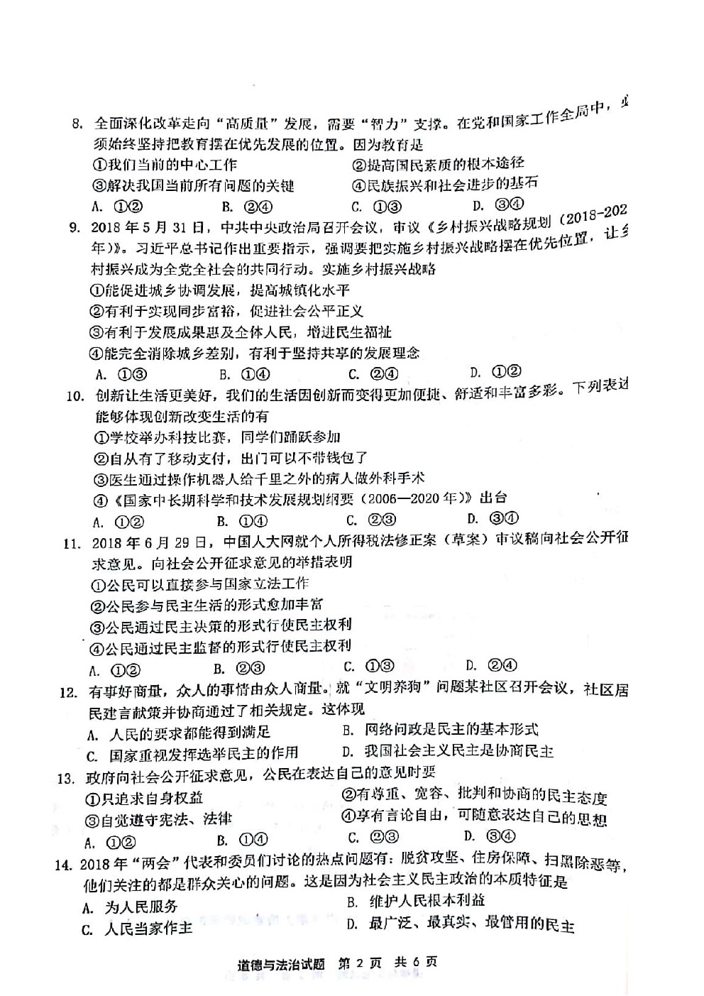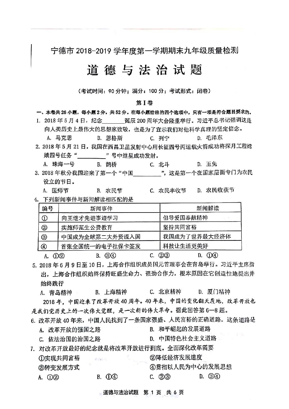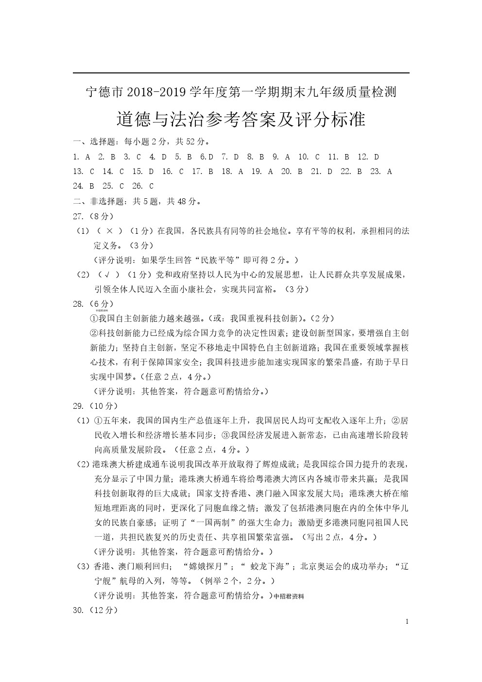 【摘要】福建省寧德市2019屆九年級上學(xué)期期末考試道德與法治試題及答案,更多中考信息可關(guān)注閩州教育中考資訊專欄。