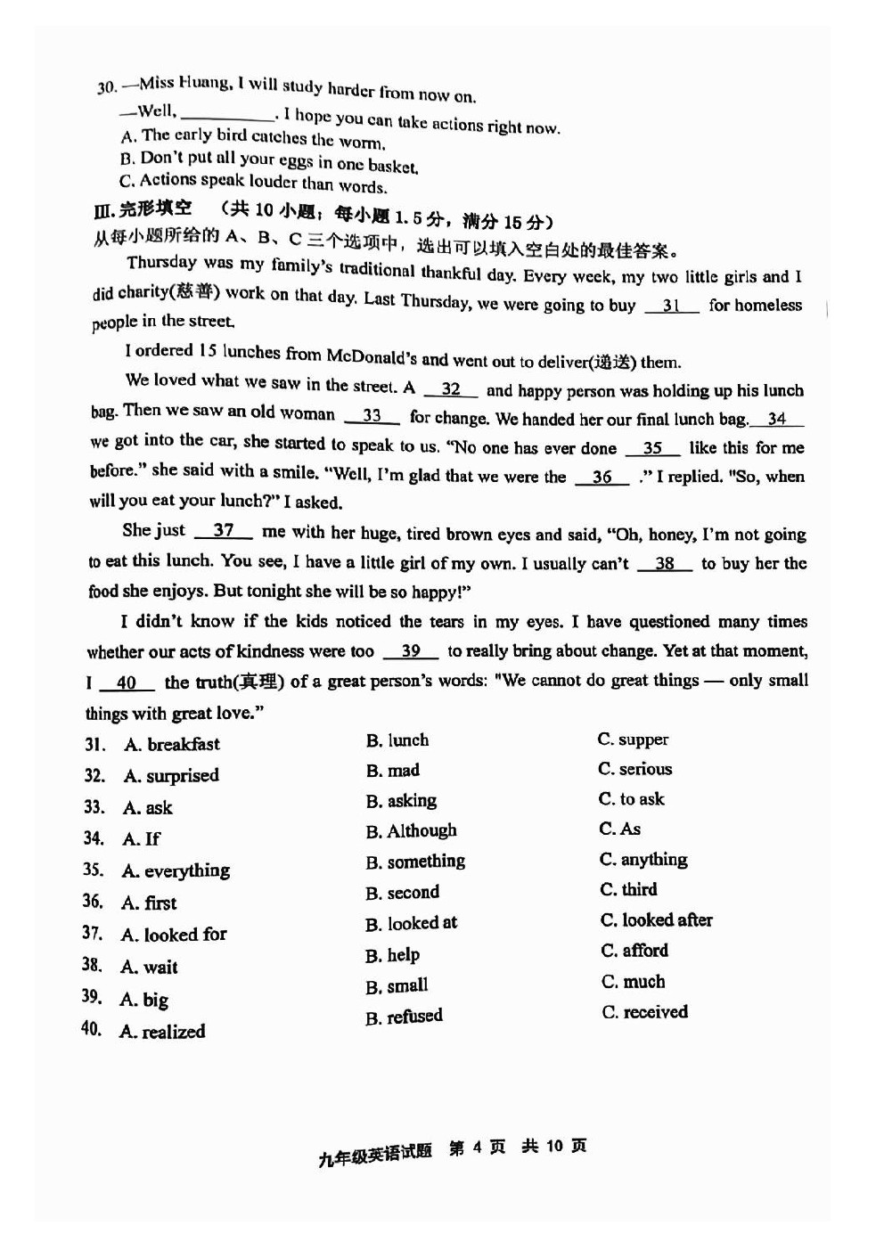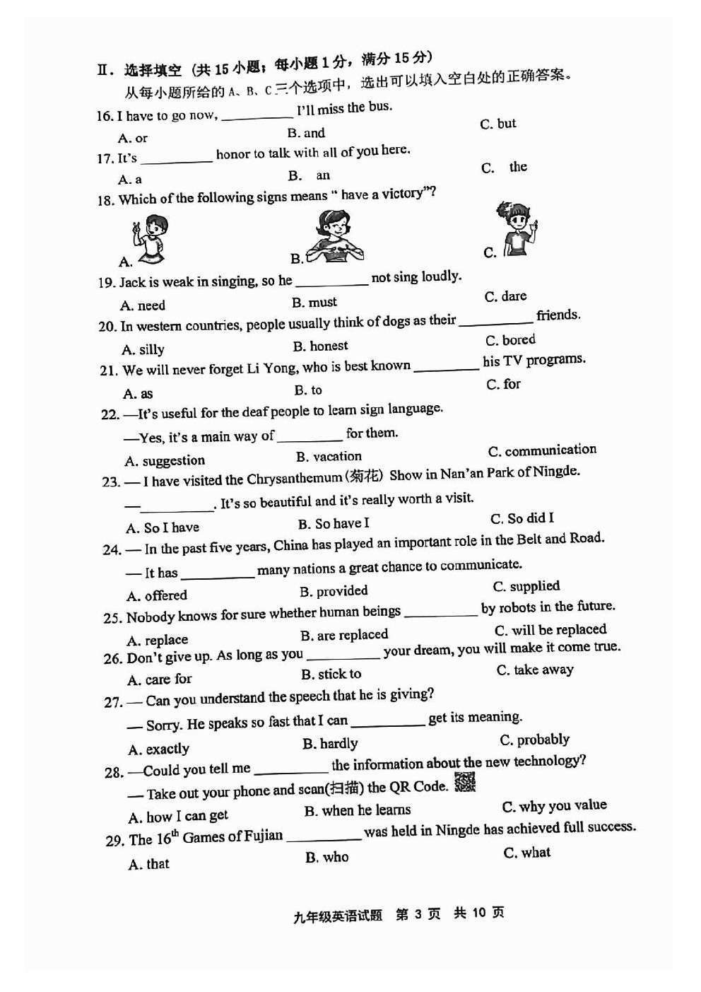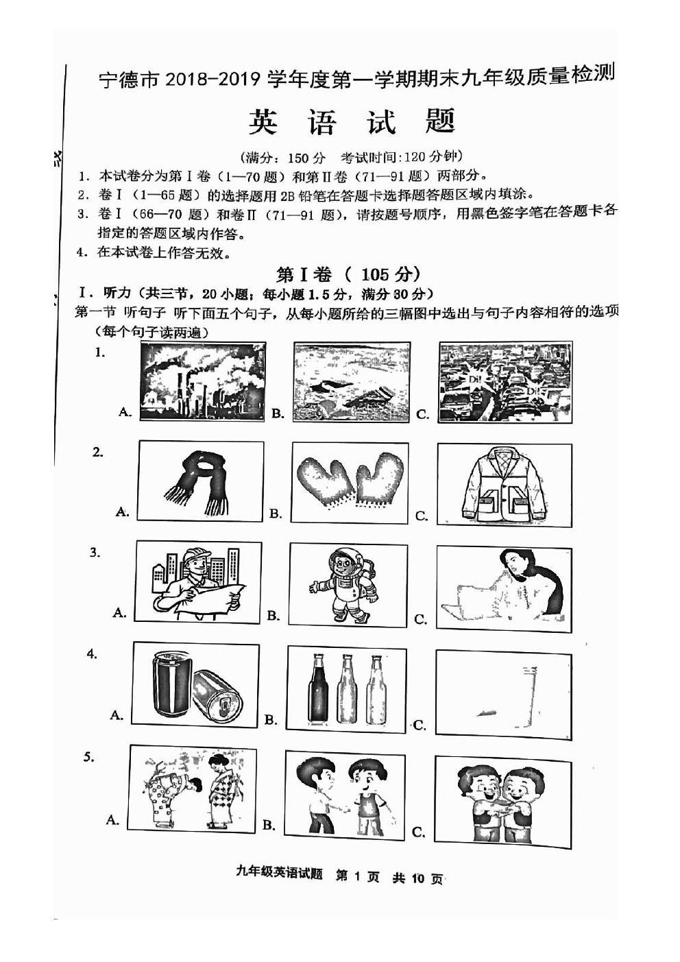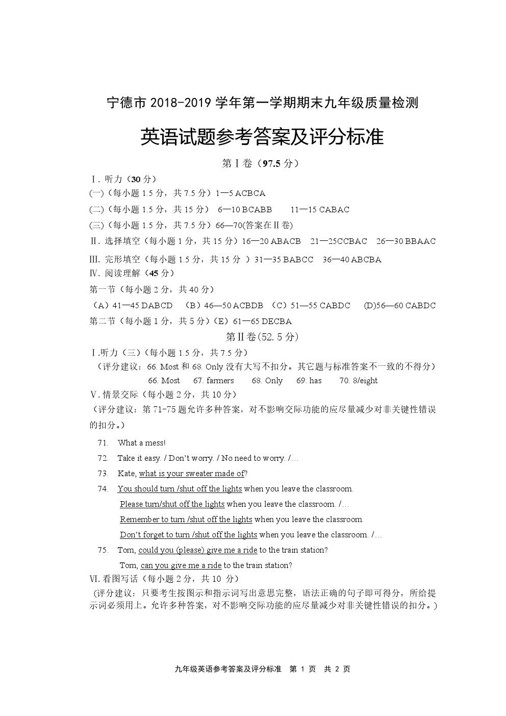 【摘要】福建省寧德市2019屆九年級上學(xué)期期末考試英語試題及答案,更多中考信息可關(guān)注閩州教育中考資訊專欄。