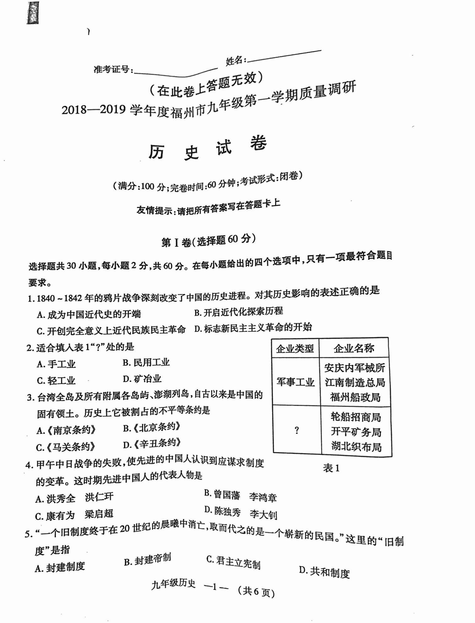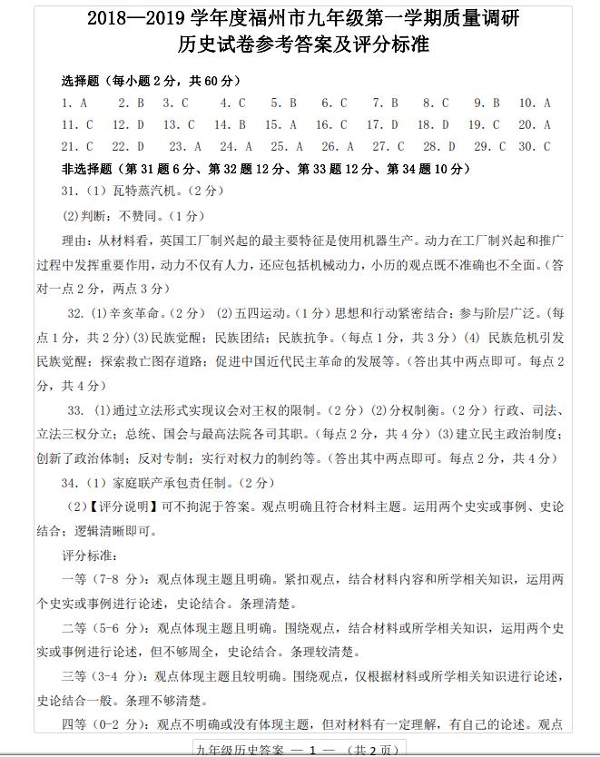 【摘要】福州市2018-2019學(xué)年度上學(xué)期初三期末質(zhì)檢歷史試題及答案!更多中考信息可關(guān)注閩州教育中考資訊專欄。