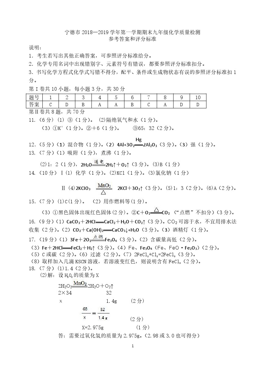 【摘要】福建省寧德市2018-2019學(xué)年度上學(xué)期初三期末質(zhì)檢化學(xué)試題及答案!更多中考信息可關(guān)注閩州教育中考資訊專欄。