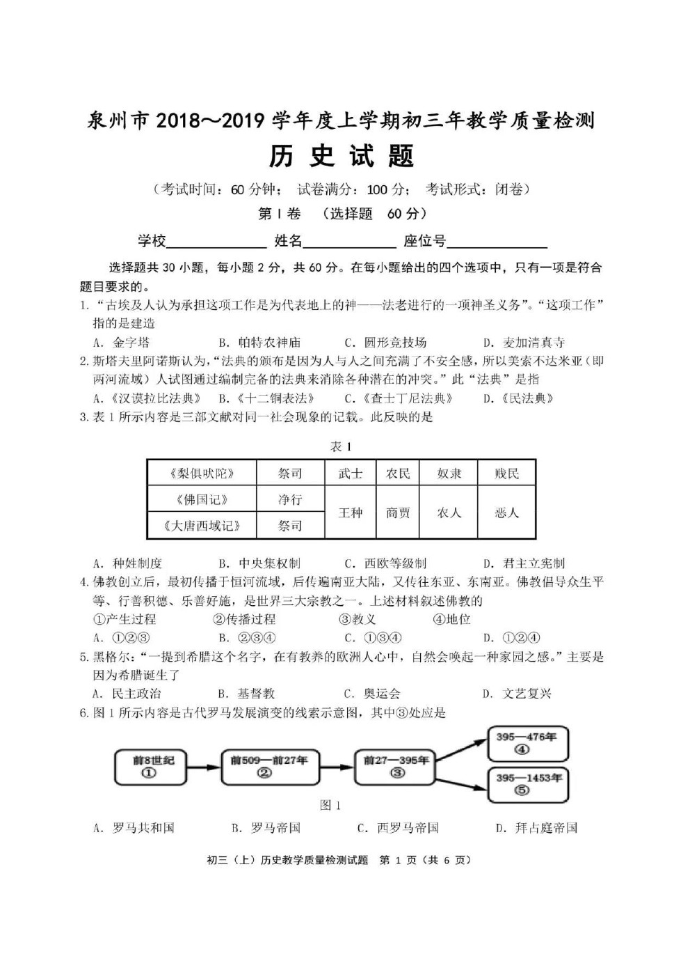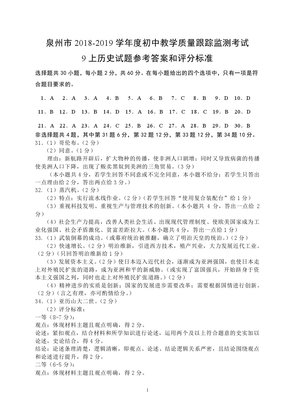 【摘要】福建省泉州市2018-2019學(xué)年度上學(xué)期初三期末質(zhì)檢歷史試題及答案!更多中考信息可關(guān)注閩州教育中考資訊專(zhuān)欄。