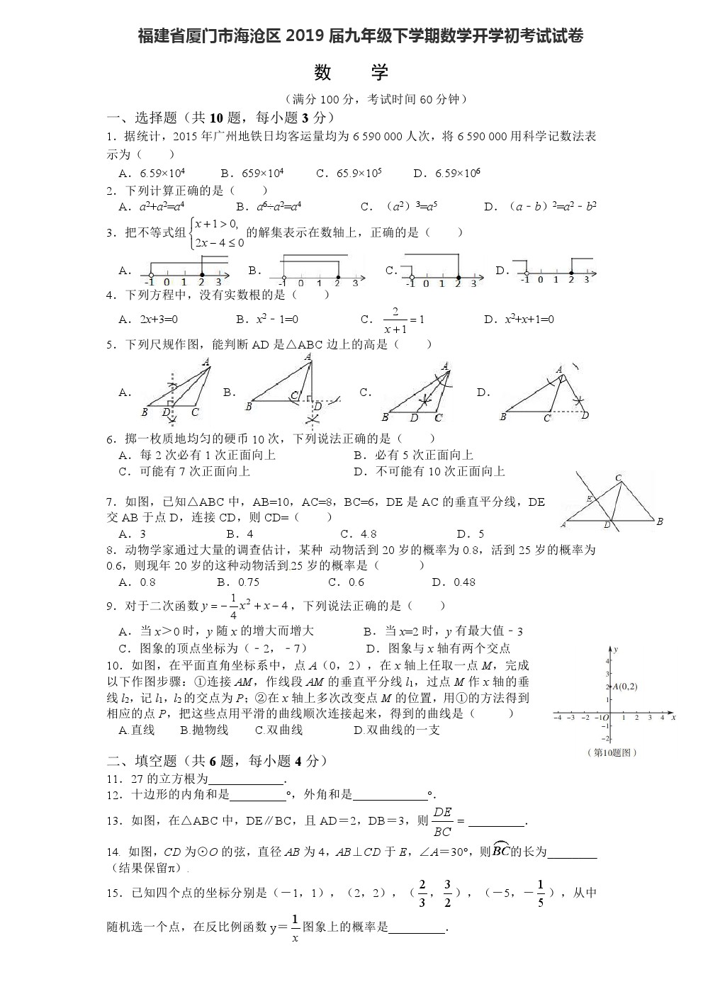 【摘要】福建省廈門市海滄區(qū)2019屆九年級(jí)下學(xué)期數(shù)學(xué)開學(xué)初考試試題!更多中考信息可關(guān)注閩州教育中考資訊專欄。