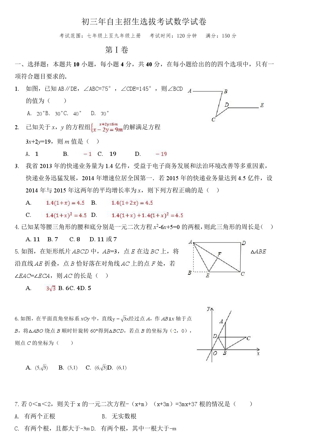 【摘要】福建省泉州市永春縣華僑中學(xué)2019年春九年級自主招生選拔數(shù)學(xué)試題及答案。更多中考信息可關(guān)注閩州教育中考資訊專欄。