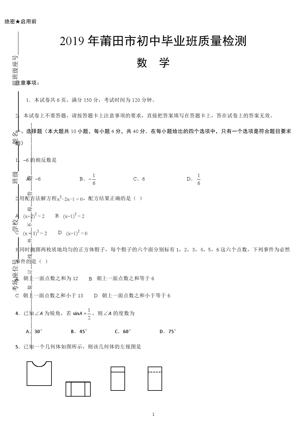【摘要】福建省寧德市2018-2019學(xué)年度九年級上數(shù)學(xué)期末質(zhì)量檢測試題,更多中考信息可關(guān)注閩州教育中考資訊專欄。