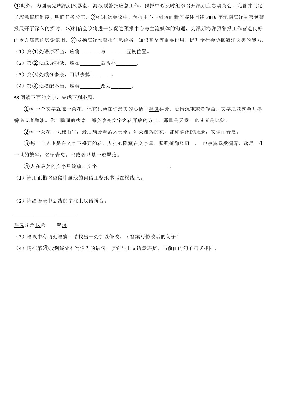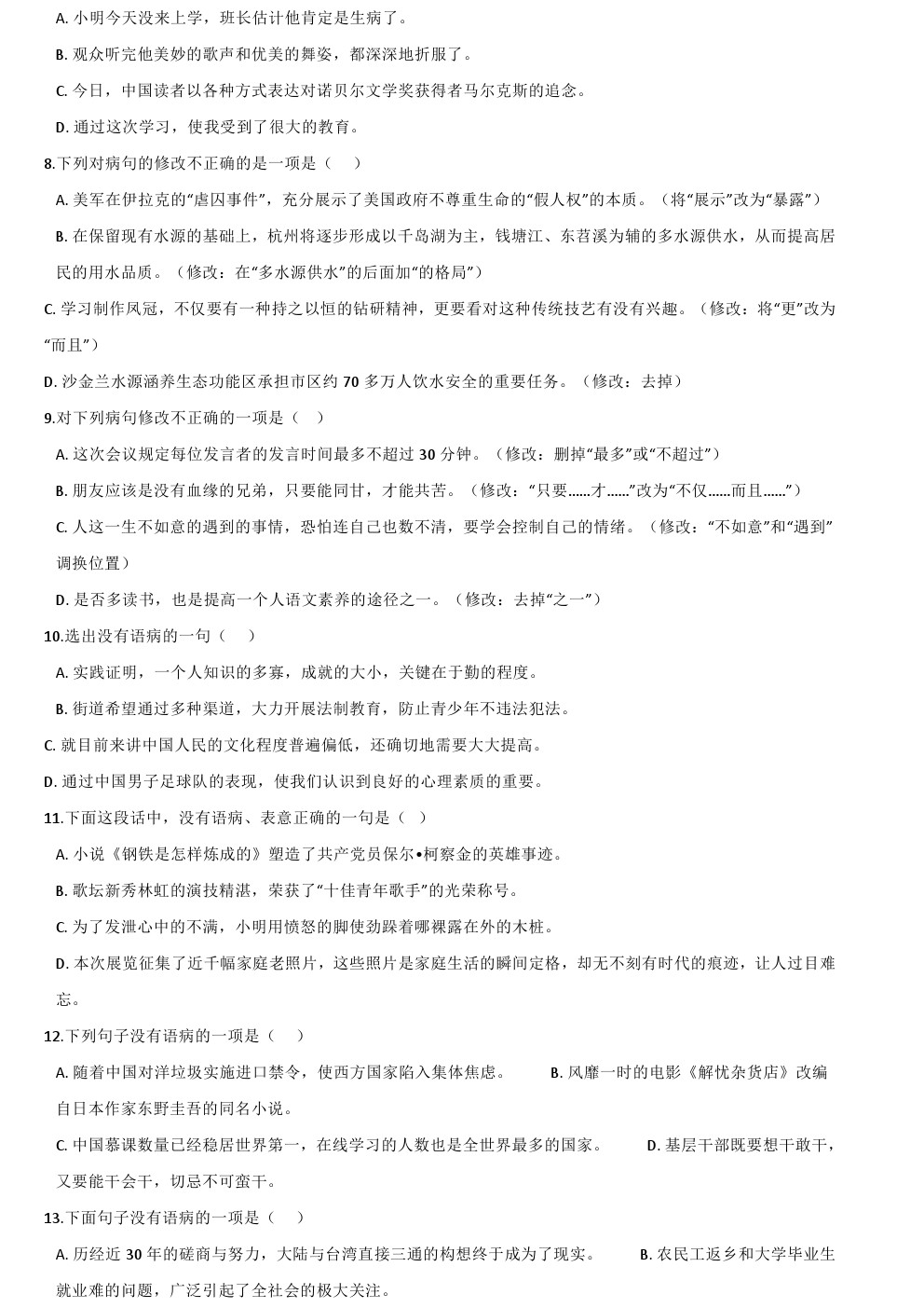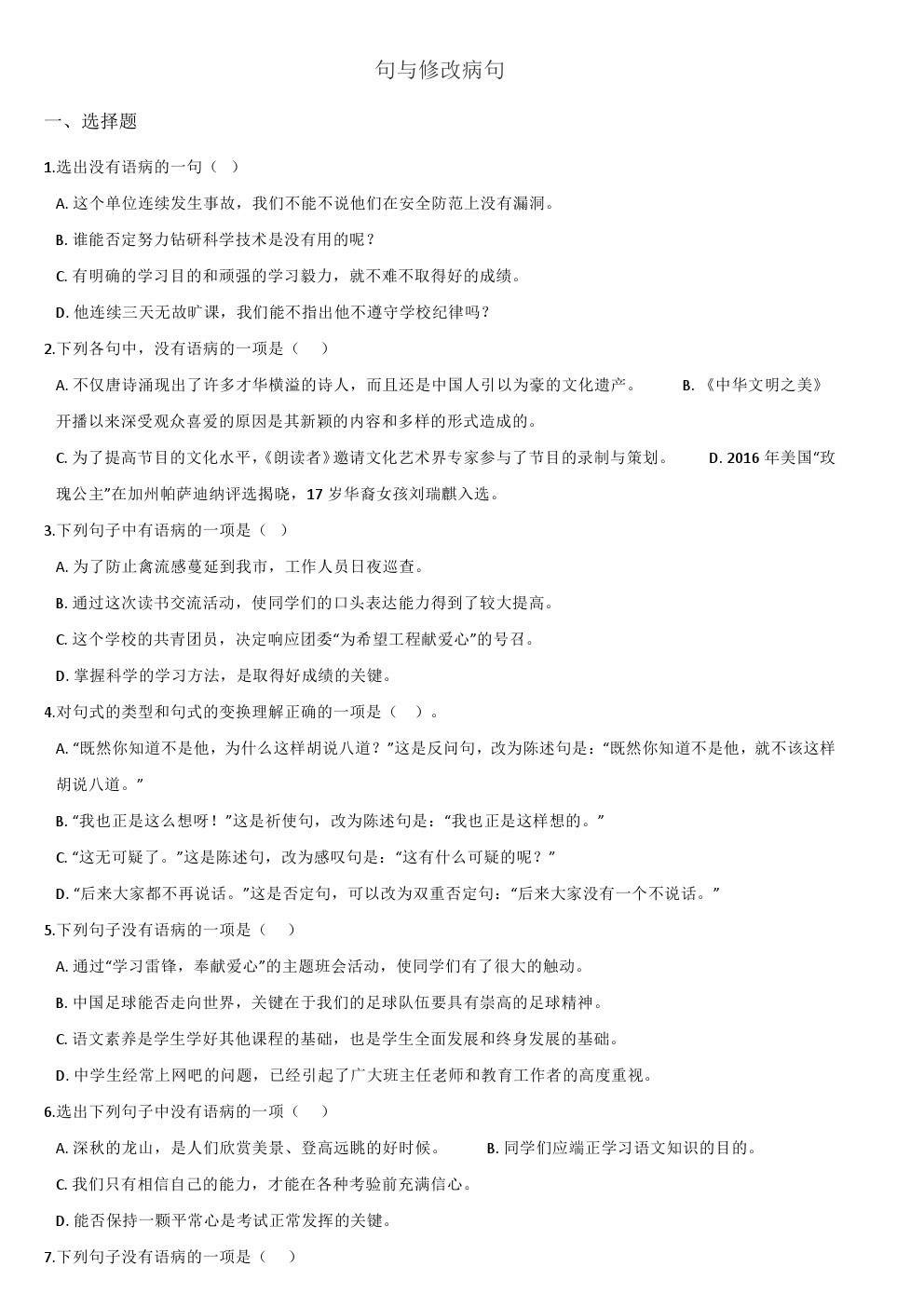 【摘要】2019屆中考語文專題復習練習:句與修改病句!更多中考信息可關注閩州教育中考資訊專欄。