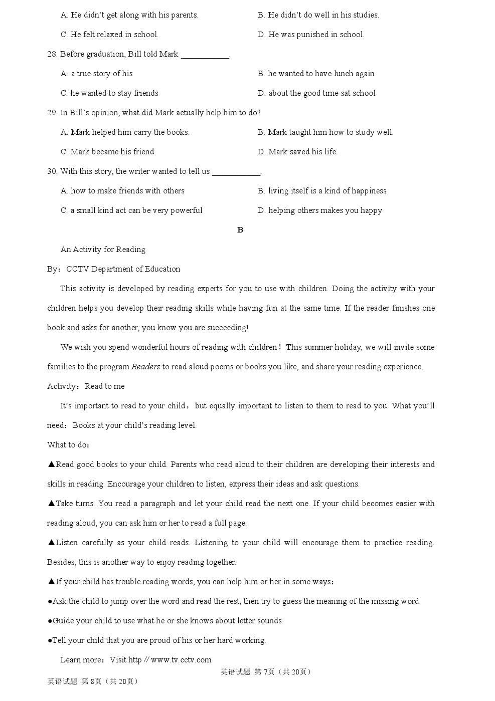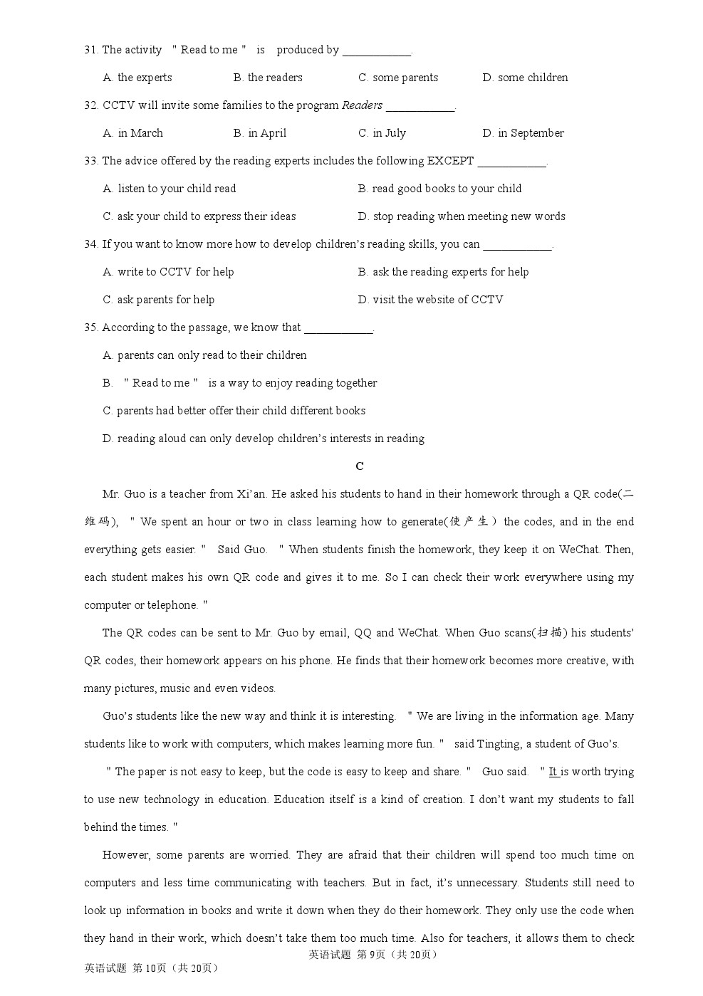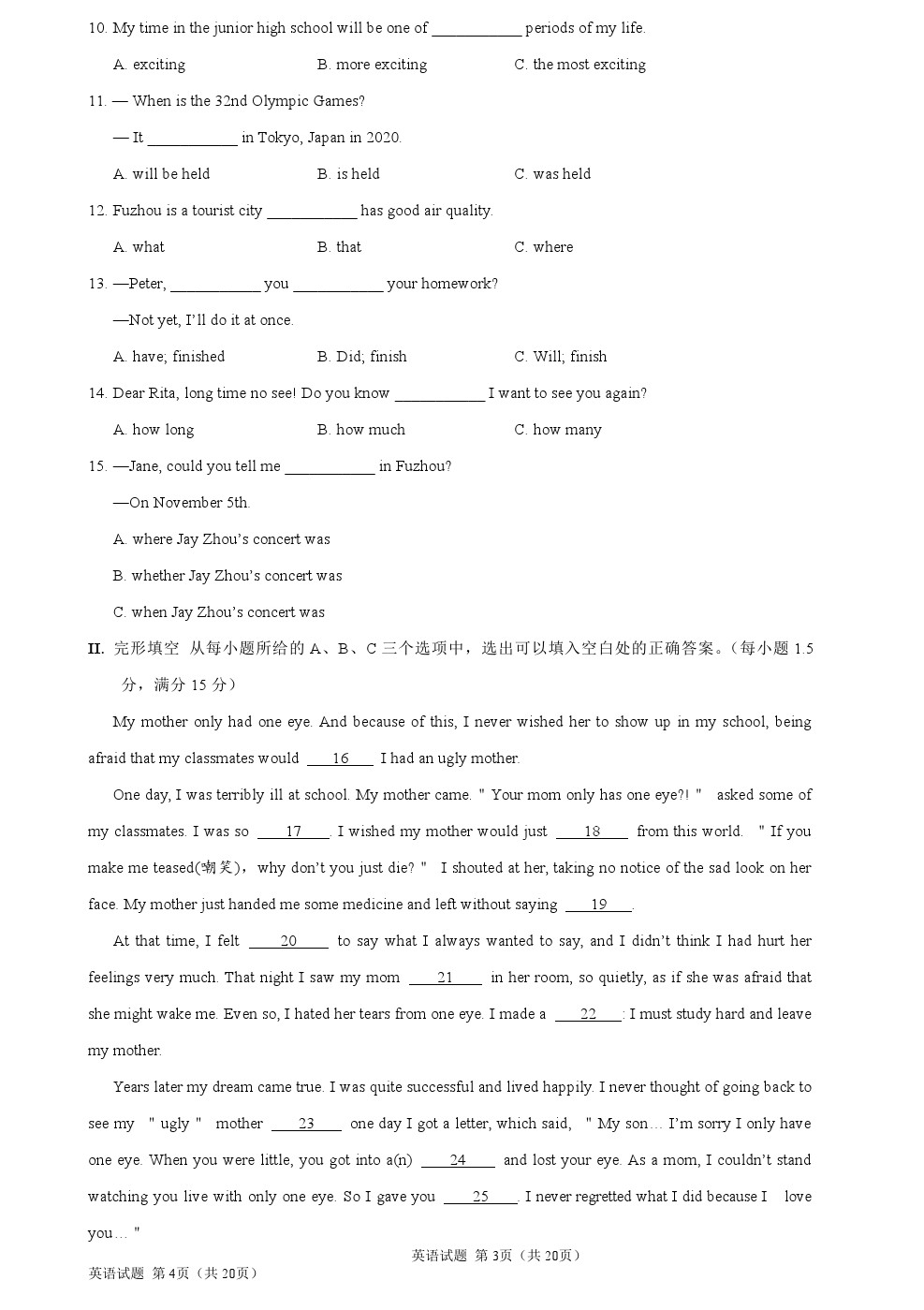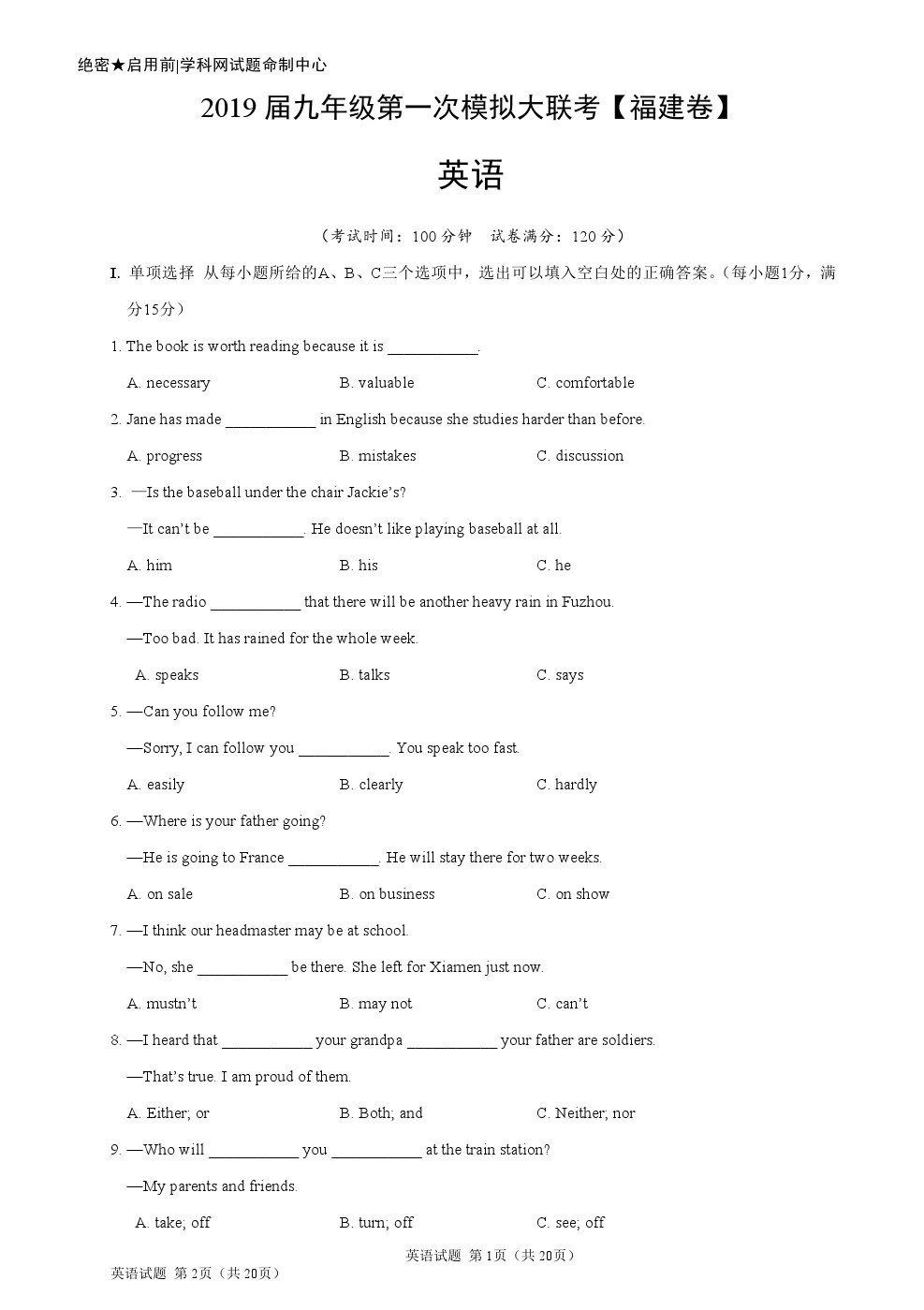 【摘要】2019屆3月九年級(jí)第一次模擬大聯(lián)考(福建卷)英語卷!更多中考信息可關(guān)注閩州教育中考資訊專欄。