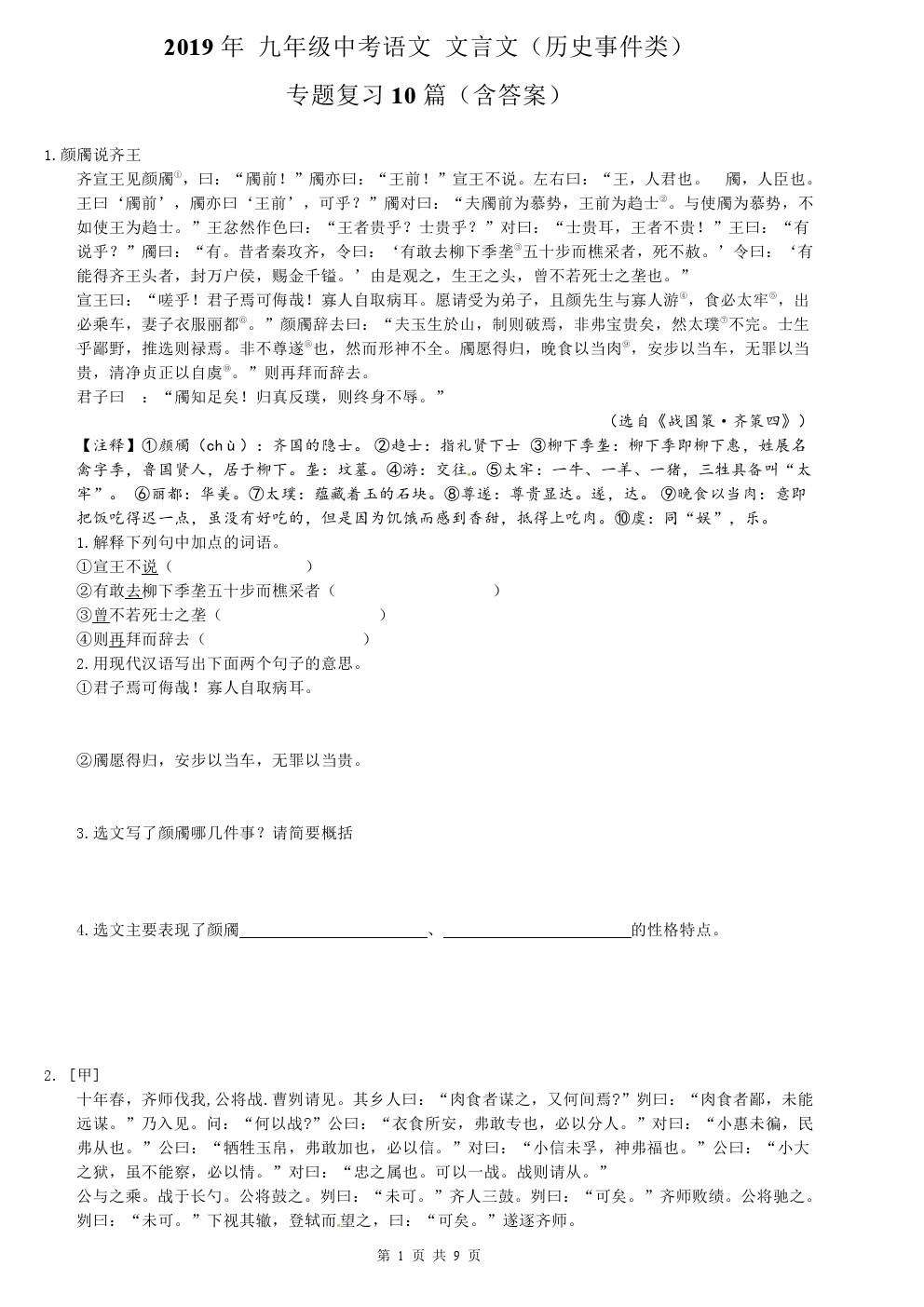 【摘要】2019年九年級(jí)中考語文文言文(歷史事件類)專題復(fù)習(xí)!更多中考信息可關(guān)注閩州教育中考資訊專欄。