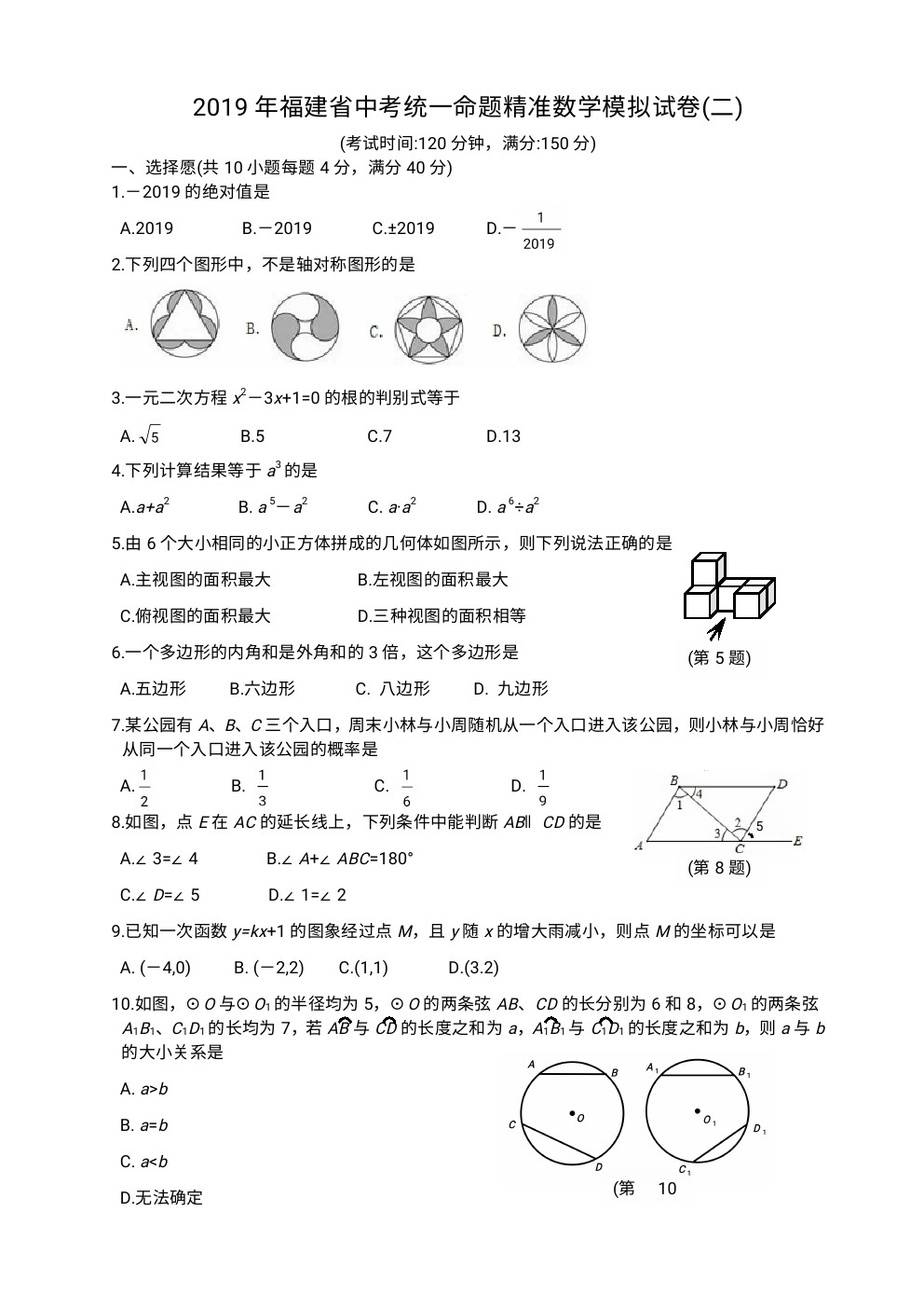 【摘要】福建省2019年中考統(tǒng)一命題精準(zhǔn)數(shù)學(xué)模擬測(cè)試題及答案!更多中考信息可關(guān)注閩州教育中考資訊專欄。