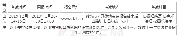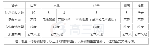 河北、遼寧、湖南、福建等地考生參加所在省2019年音樂類專業(yè)統(tǒng)考(考試科目以當?shù)卣猩鞴懿块T公布為準),我校不再另行舉行專業(yè)測試。