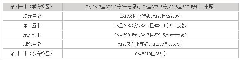 2017年泉州市中考錄取分?jǐn)?shù)線