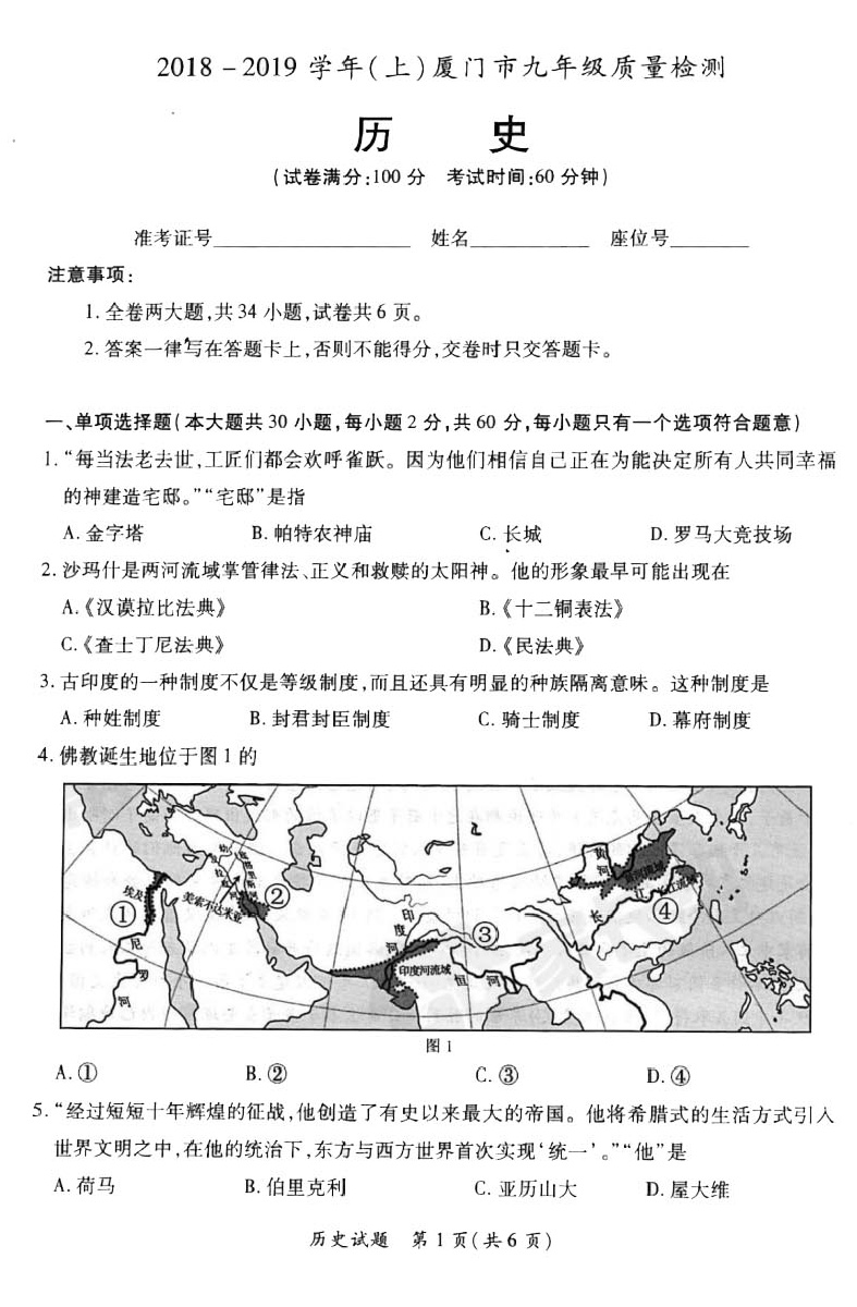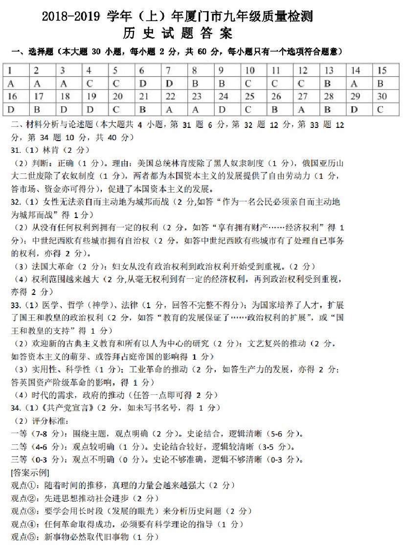 【摘要】福建省廈門市2018-2019學年九年級期末質量檢測歷史試題及答案!更多中考信息可關注閩州教育中考資訊專欄。