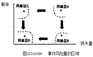 若某事件經(jīng)過風險評估,它處于風險區(qū)A,則應采取措施,降低其概率,以使它移位至風險區(qū)B;或采取措施降低其損失量,以使它移位至風險區(qū)C。風險區(qū)B和C的事件則應采取措施,使其移位至風險區(qū)D。
