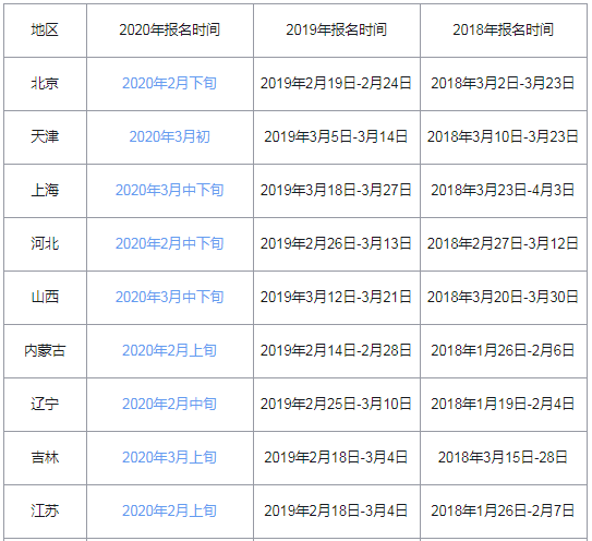 2020年各省二級(jí)建造師考試報(bào)名時(shí)間匯總