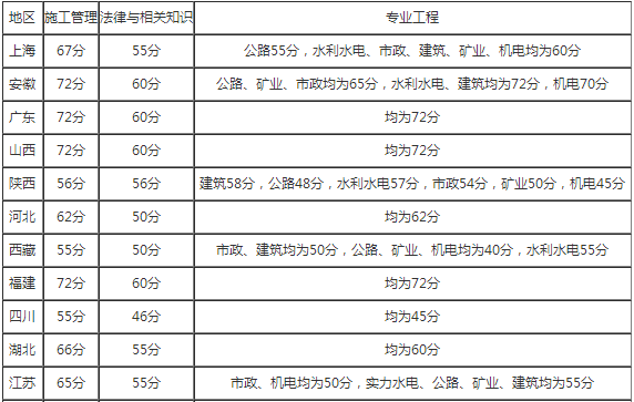 2018二級(jí)建造師考試已結(jié)束,各位考生也參考了各個(gè)科目真題及答案,對(duì)自己分?jǐn)?shù)大概也有了一些評(píng)估,具體能不能過(guò),要來(lái)看看往年各個(gè)地區(qū)合格標(biāo)準(zhǔn)匯總信息,可以適當(dāng)作為參考: