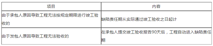 特殊情況下缺陷責任期的起點