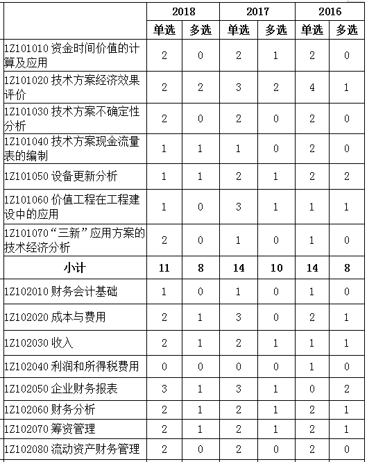 近三年一級建造師《建設工程經濟》各章節(jié)分值分布