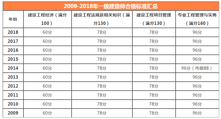 精彩文章分享:2009至2018一年級建造師考試合格標準匯總